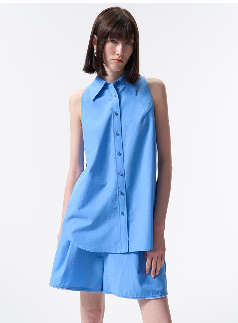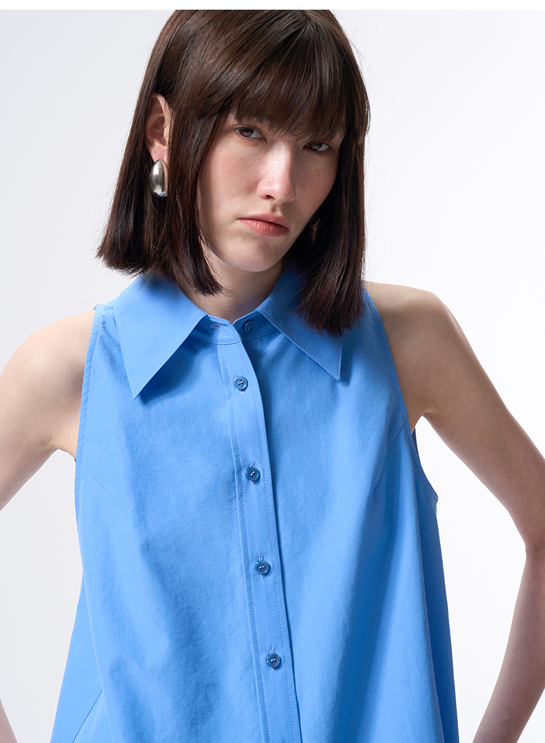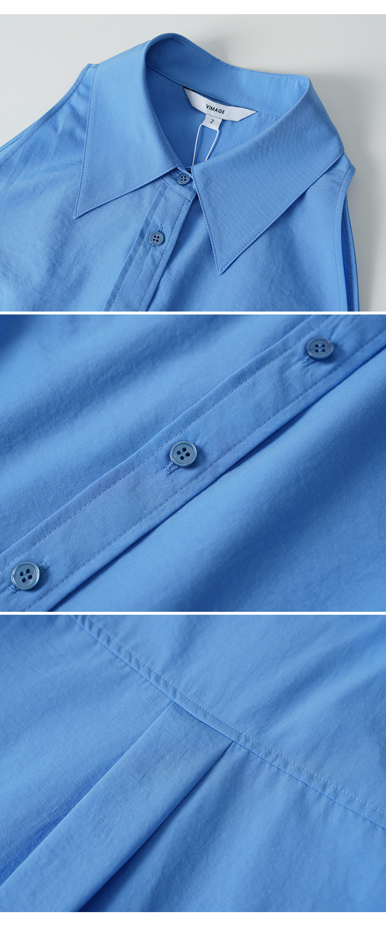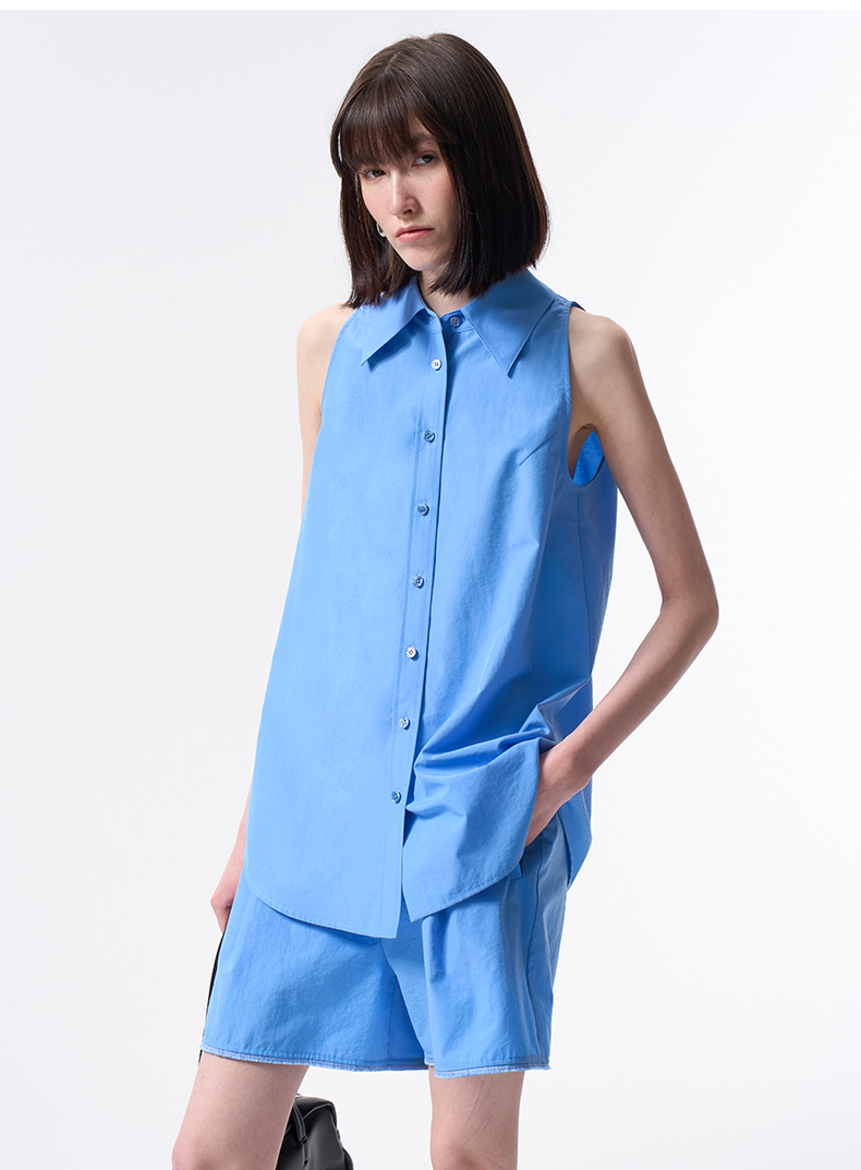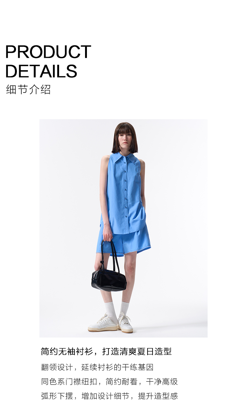 VIMAGE纬漫纪纯色收腰显瘦时尚无袖衬衫2026夏新款V2509204