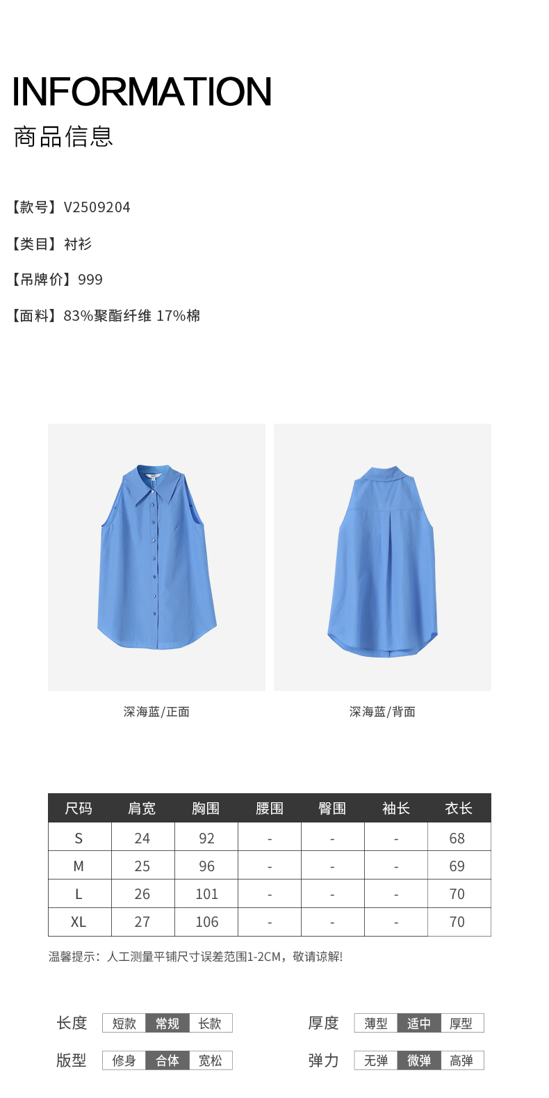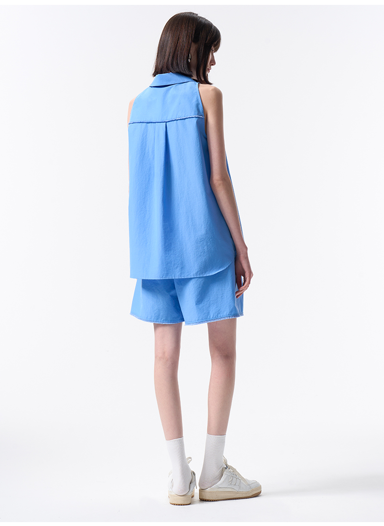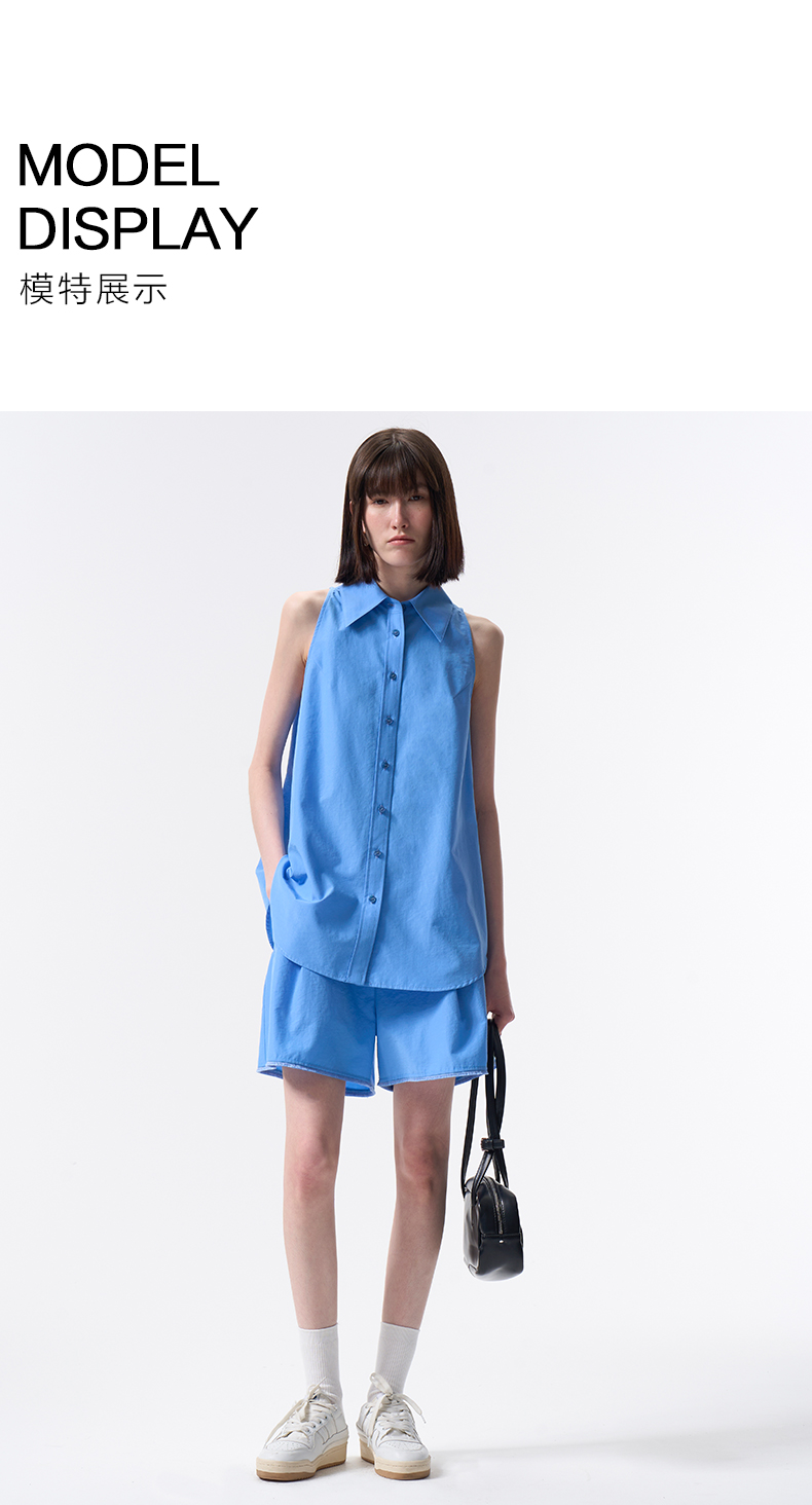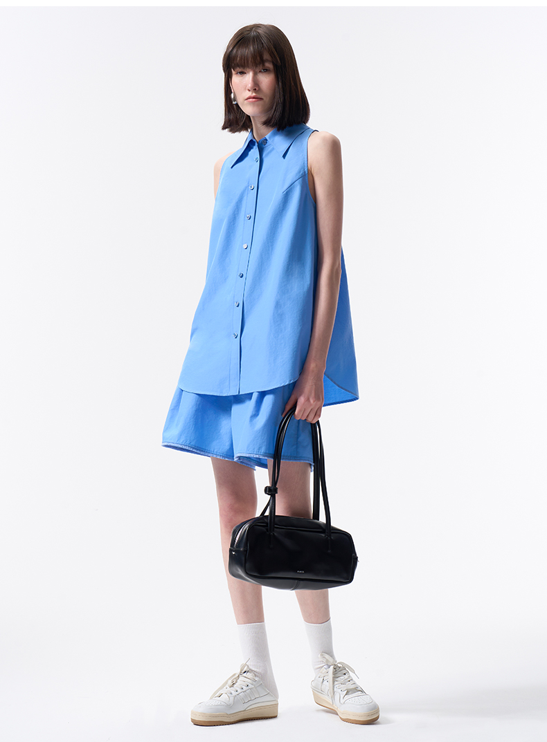 VIMAGE纬漫纪纯色收腰显瘦时尚无袖衬衫2026夏新款V2509204