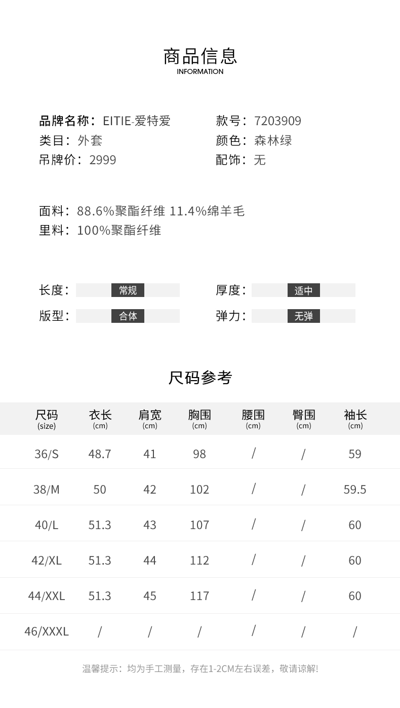 EITIE爱特爱冬季新款气质修身显瘦时尚小香风外套7203909