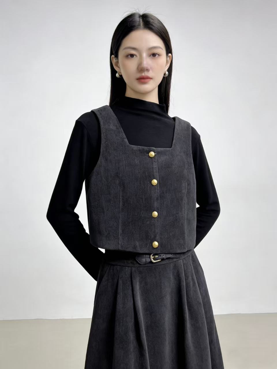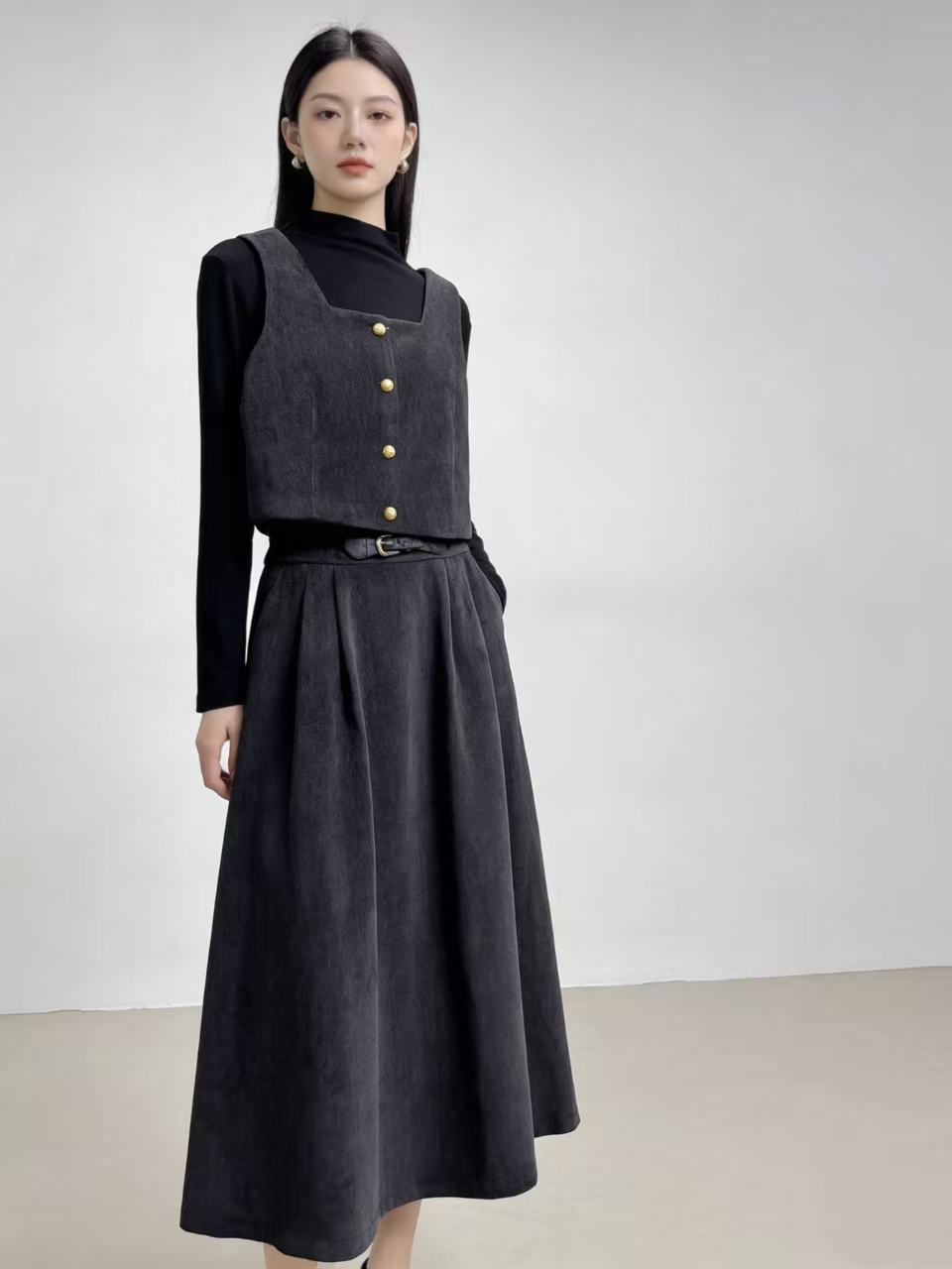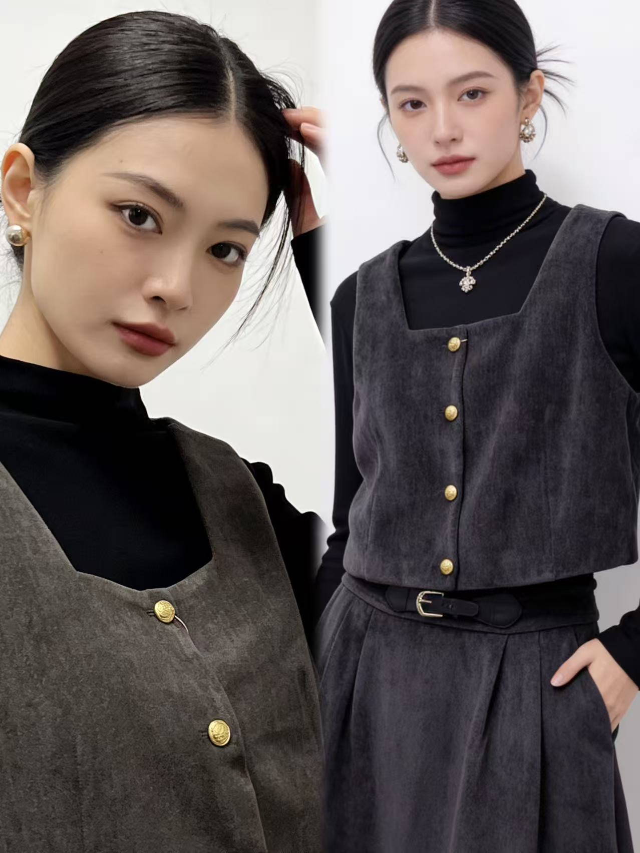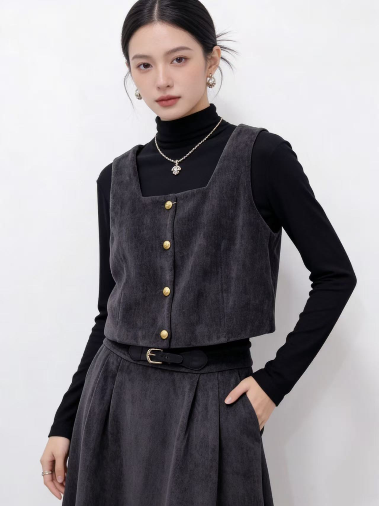 418良粉节|2026 活动爆款 活动爆款~【自营】衣周期~(三件套)Q78雪尼尔马甲➕半高领打底衫➕半身裙套装-喜出