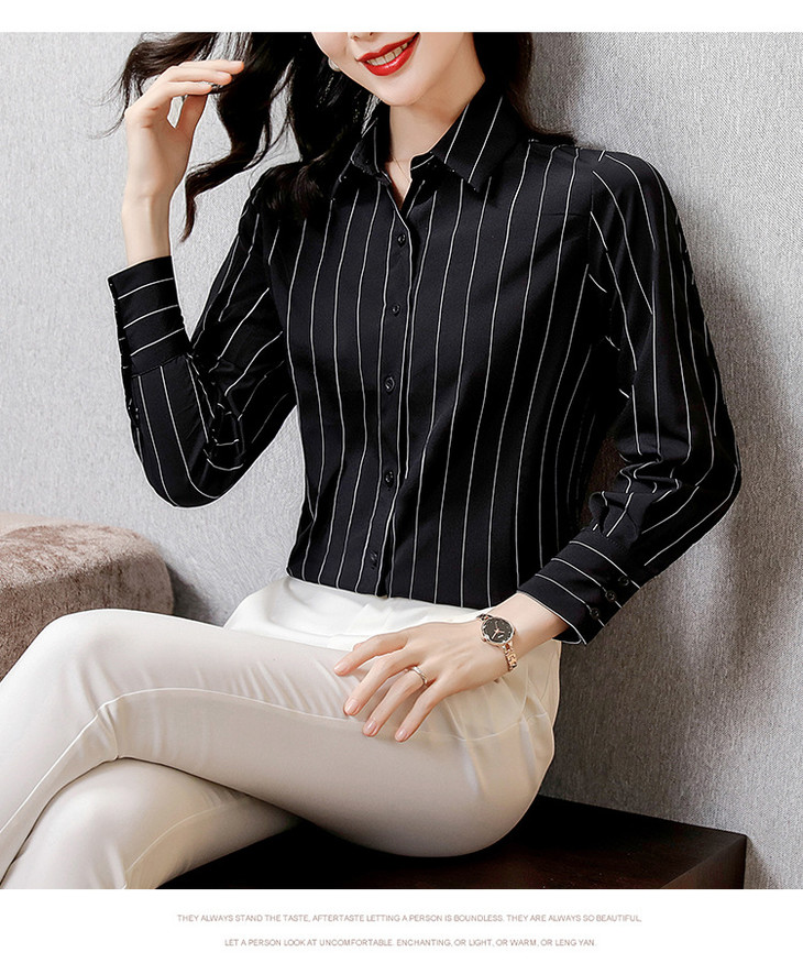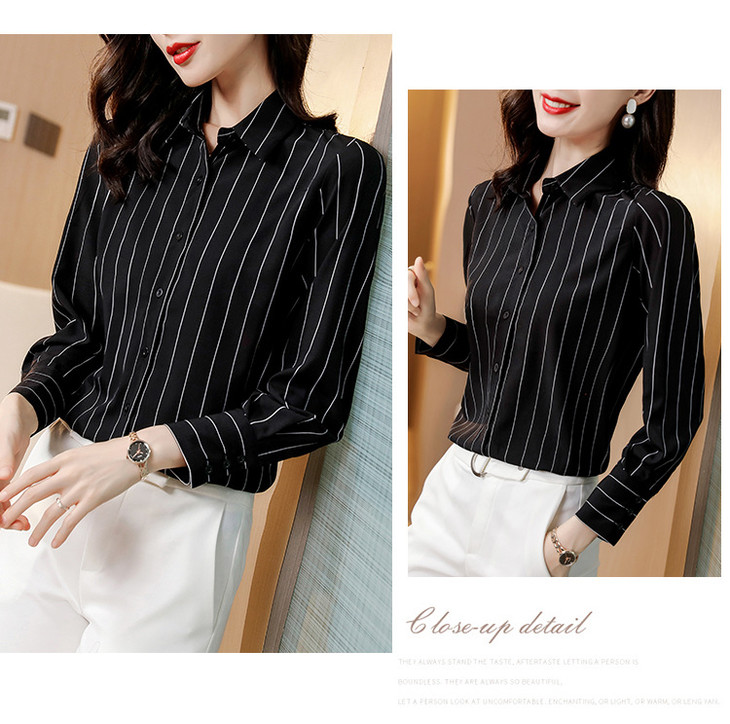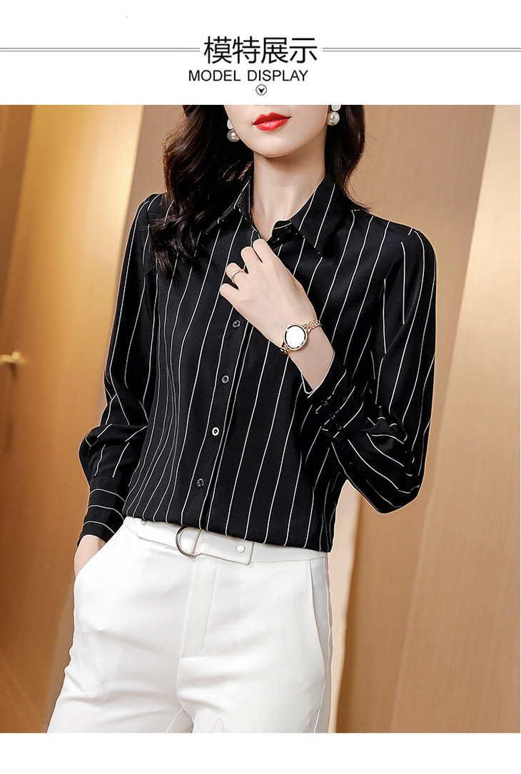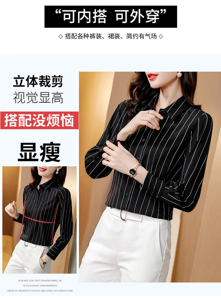 KQL B41N3611仿真丝衬衫时尚条纹气质小衫