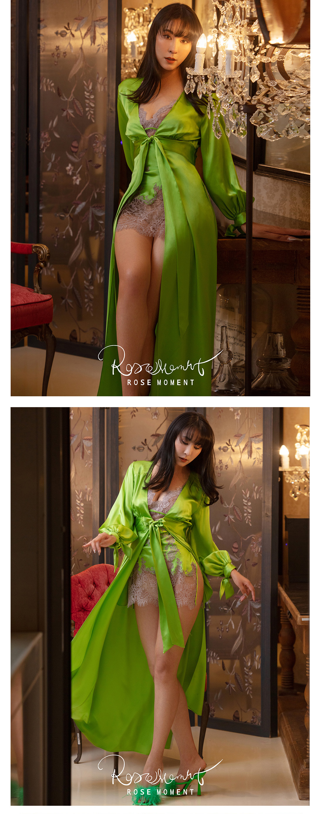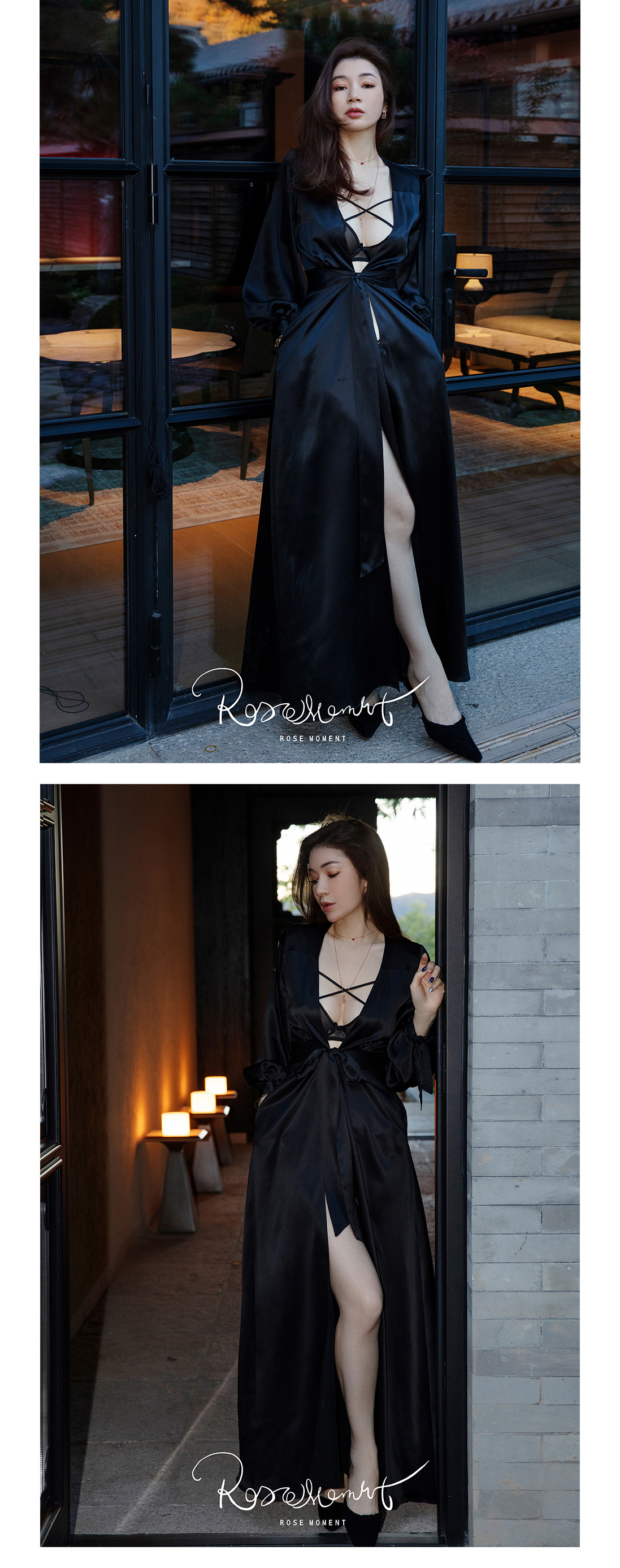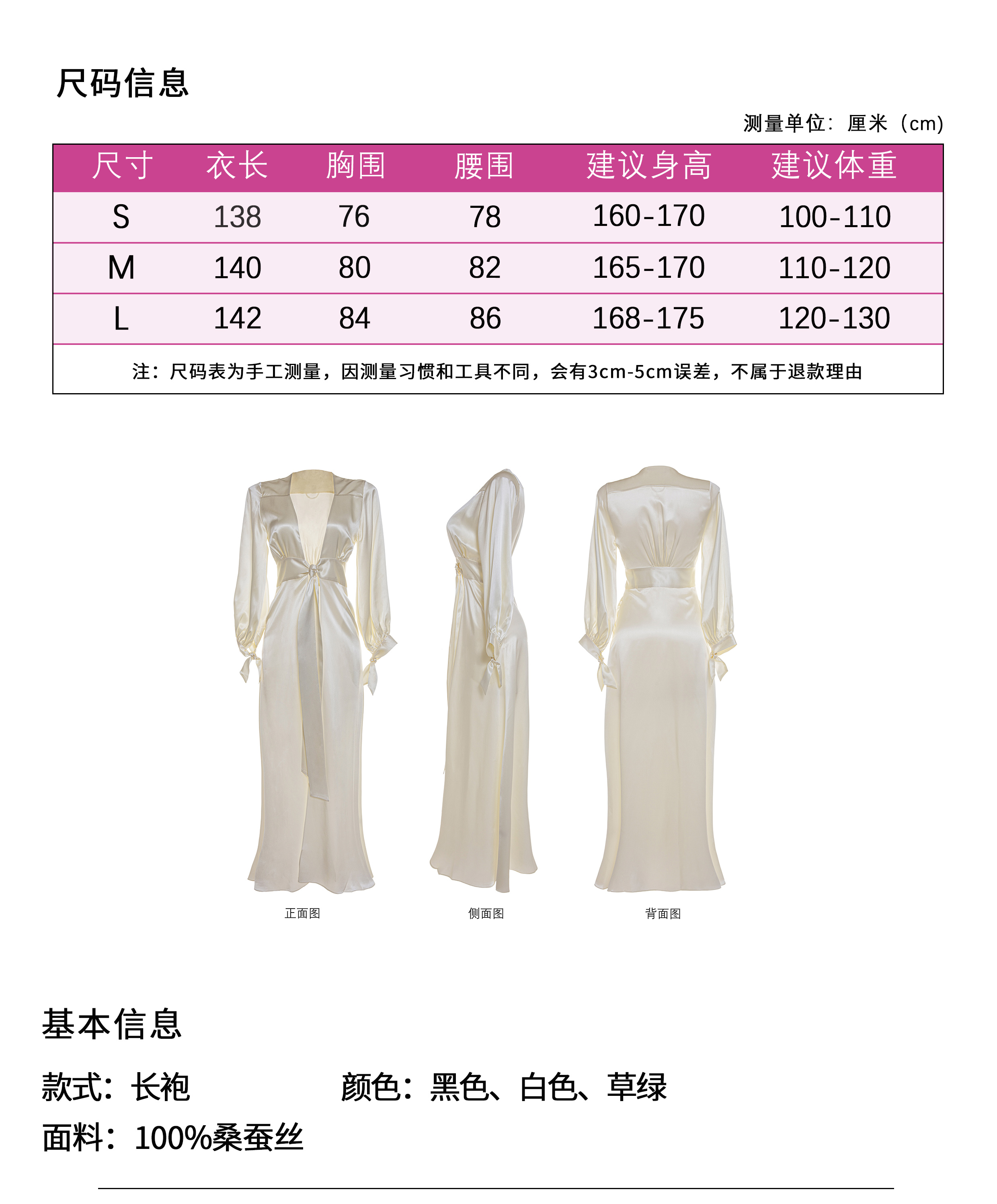 真丝丝绒翻领珍珠边长款睡袍 P02548