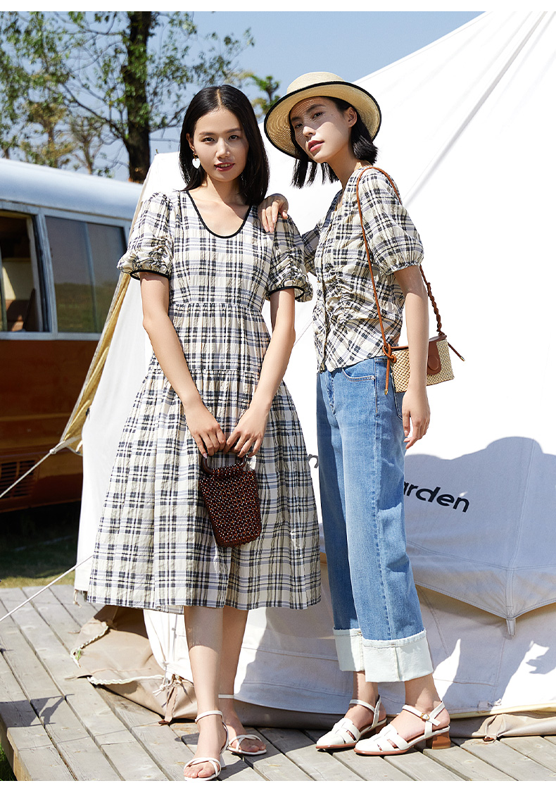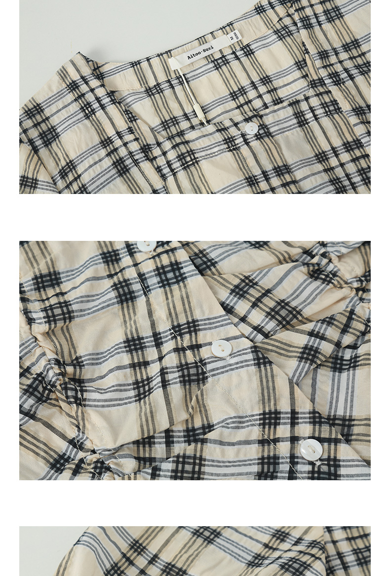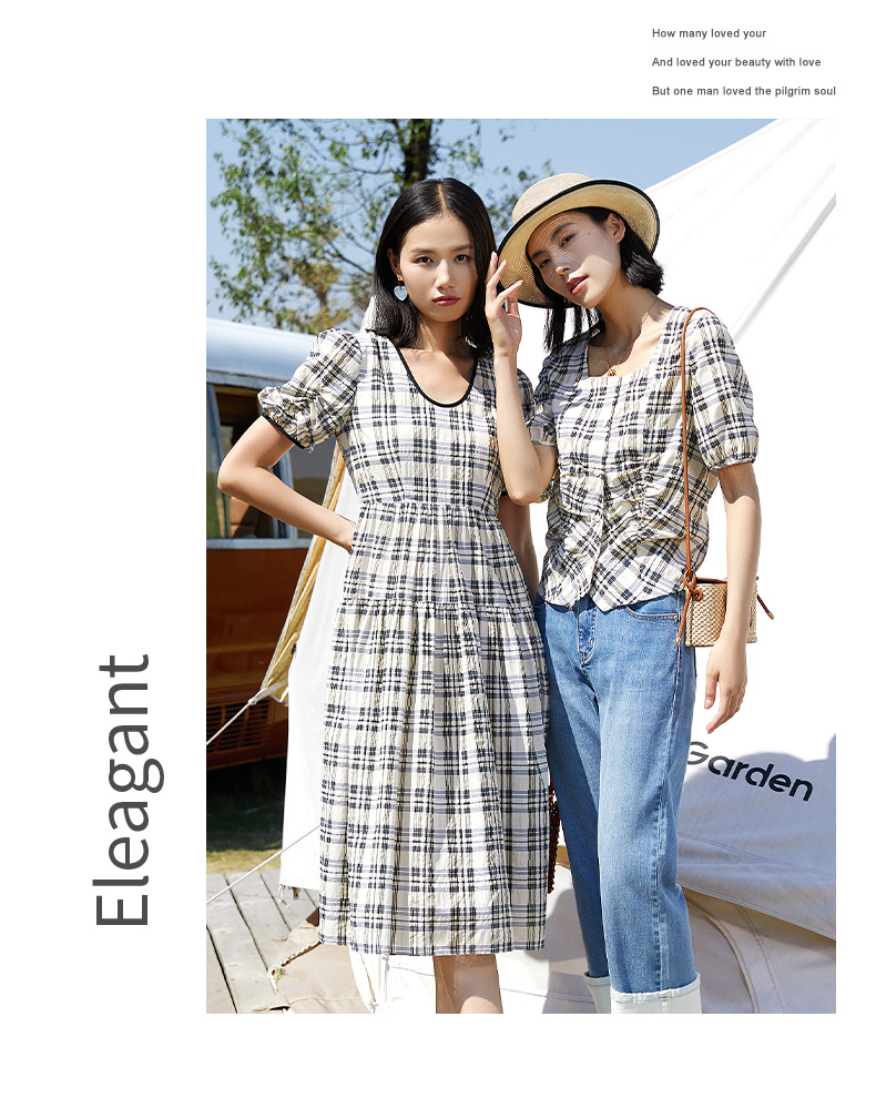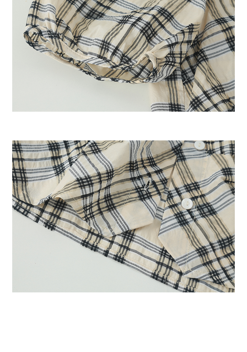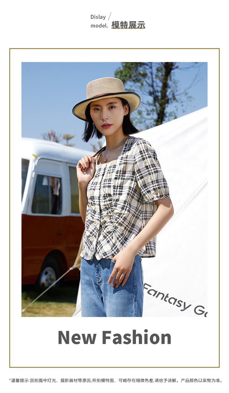方领格纹短袖套头衫女2024夏季新款显瘦高级感上衣
