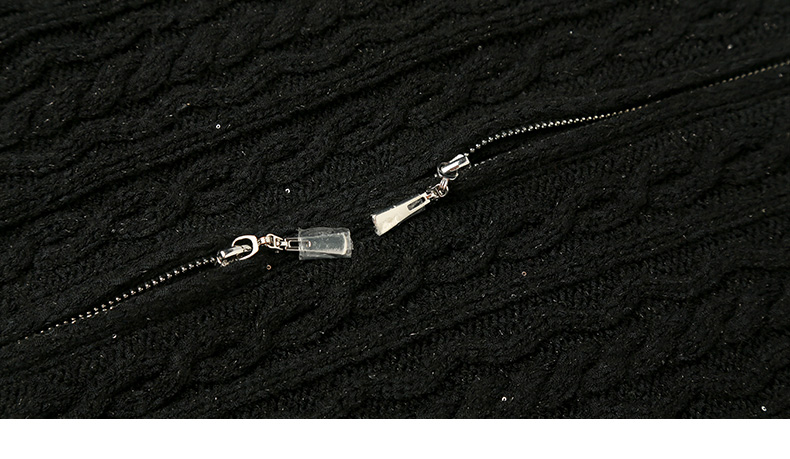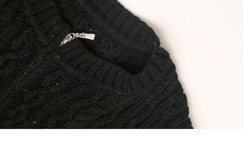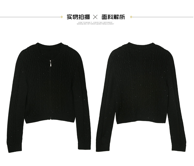 黑色亮片针织开衫女 短款拉链长袖上衣 春秋季修身显瘦毛衣外套