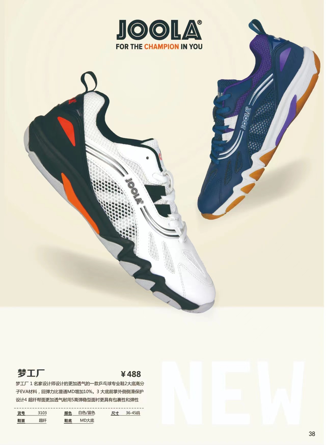 JOOLA优拉 梦工厂 男女款耐磨防滑专业乒乓球鞋(尺码偏小一码)