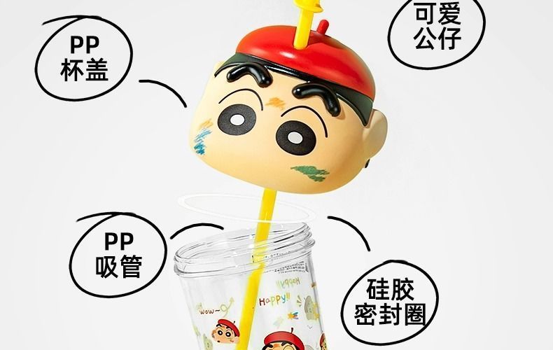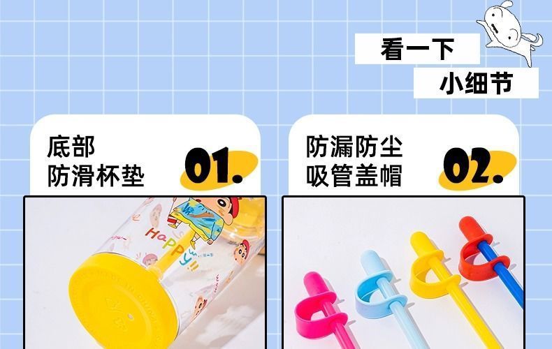 【蜡笔小新水杯,高颜值吸睛!】蜡笔小新夏季儿童水杯 女生高颜值学生 桌面吸管杯tritan塑料杯子-QQ