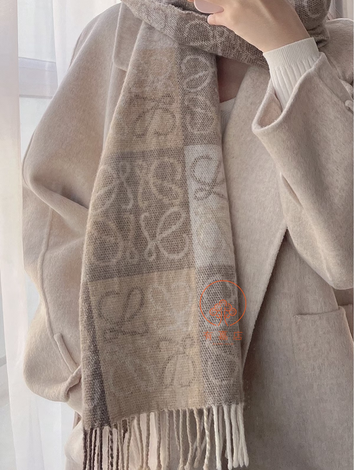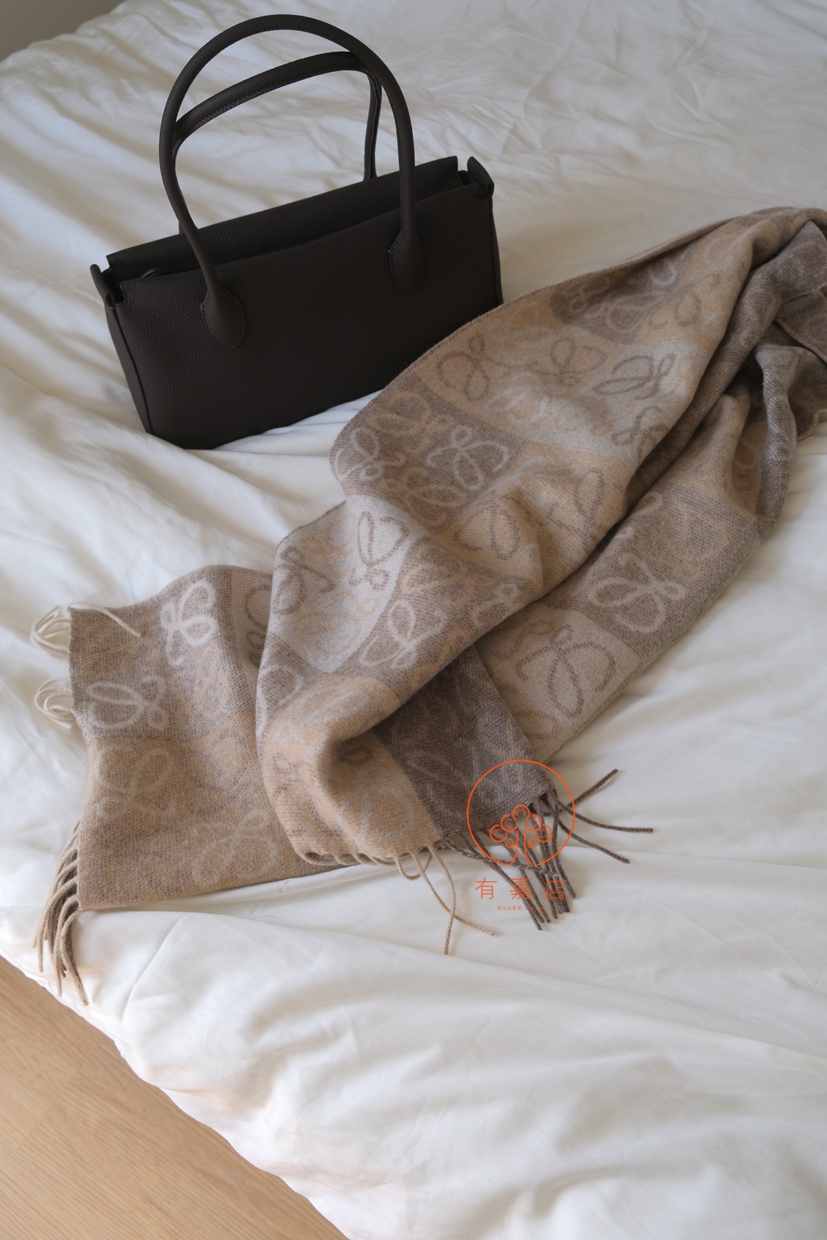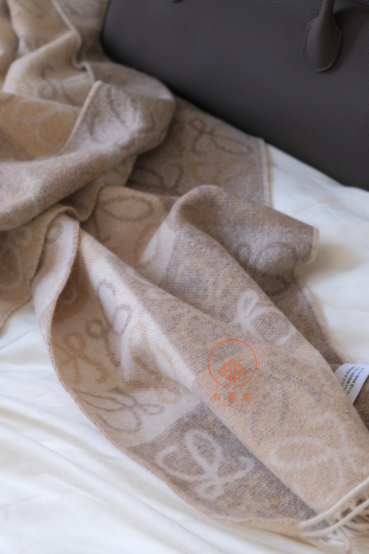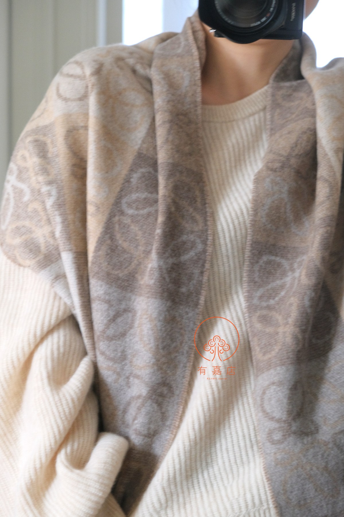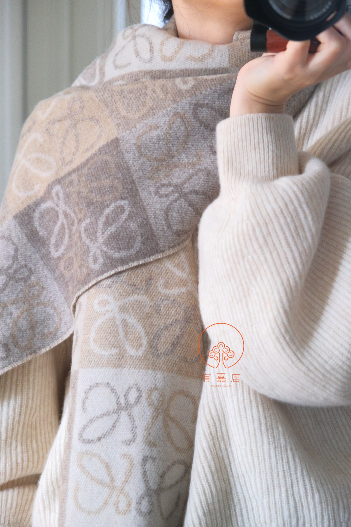 Loewe这条奶茶围巾,旧版前些年我们每年都能拿到(但以前拿到的没有专柜包装,只是胡乱自己包装)。