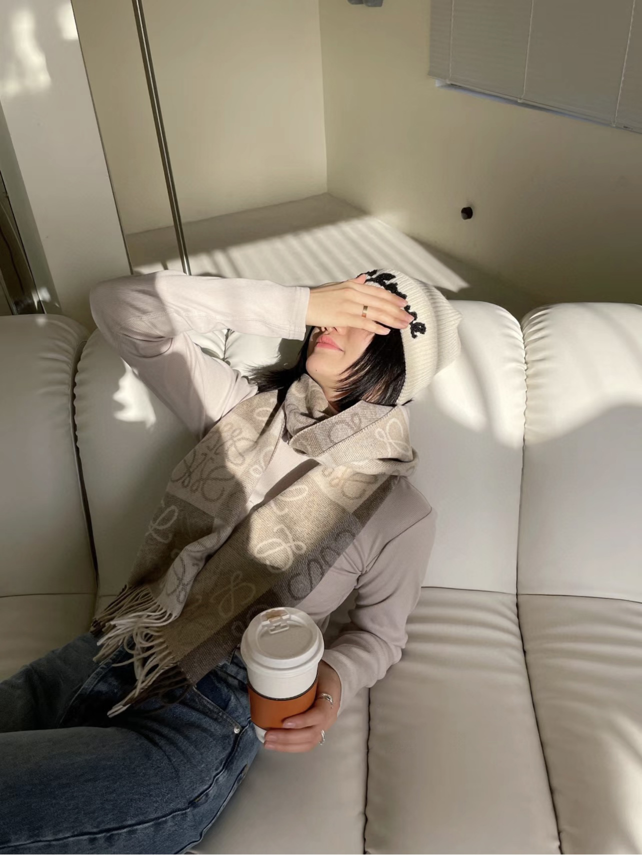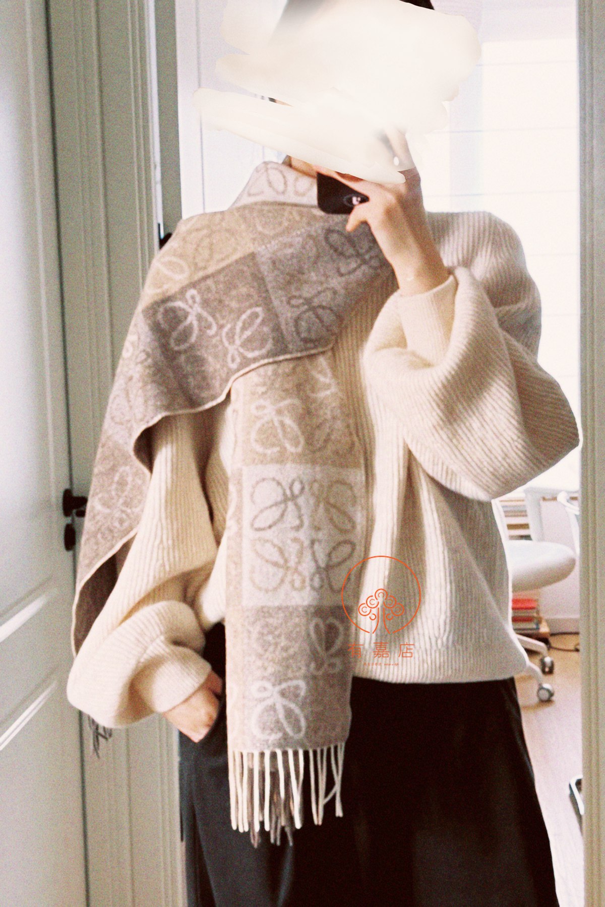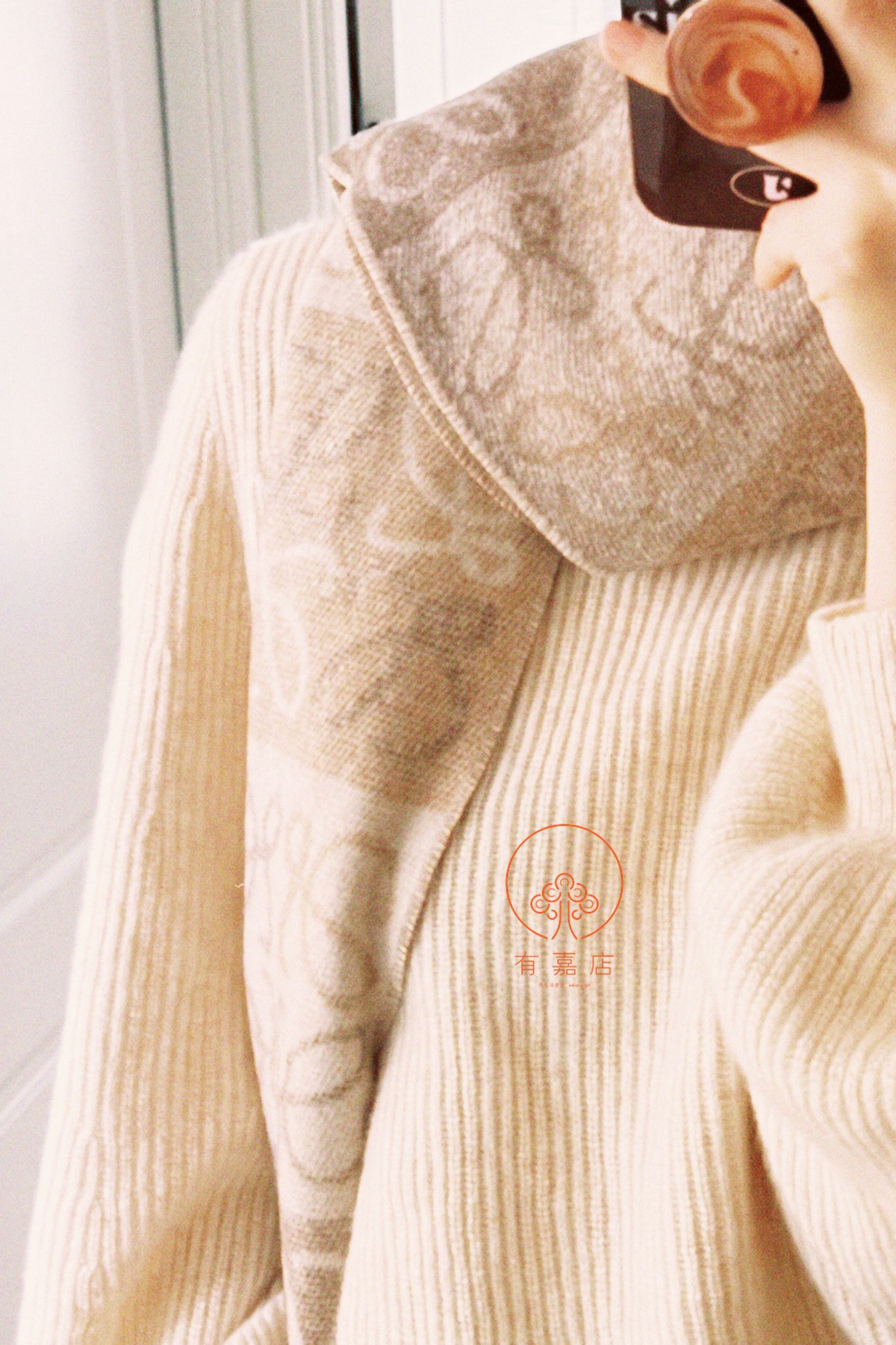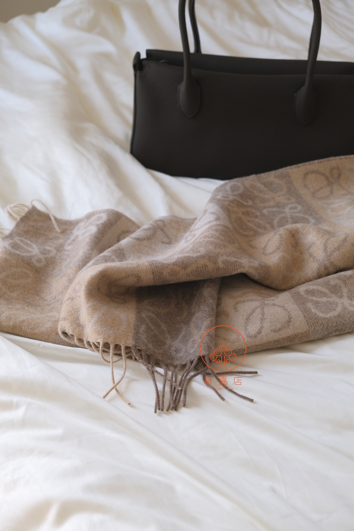Loewe这条奶茶围巾,旧版前些年我们每年都能拿到(但以前拿到的没有专柜包装,只是胡乱自己包装)。