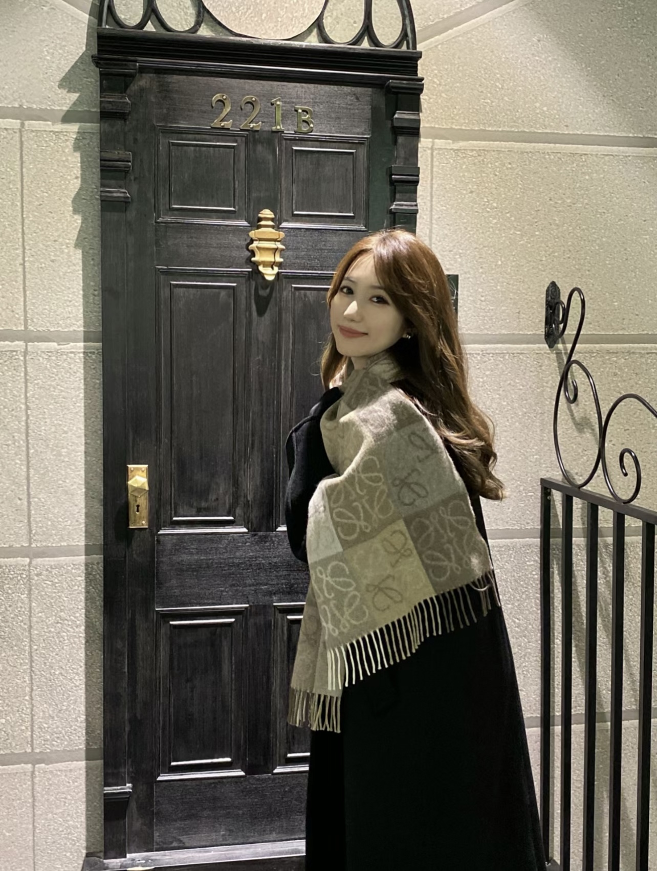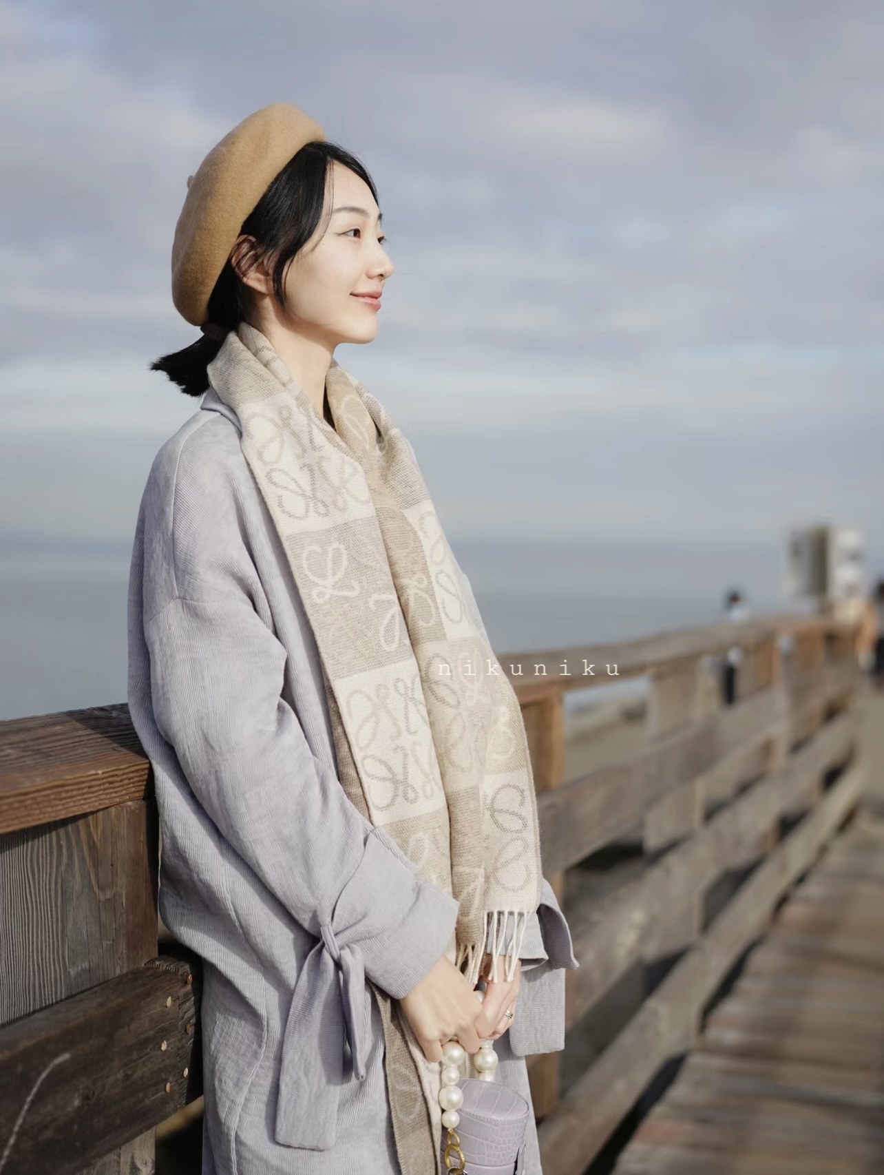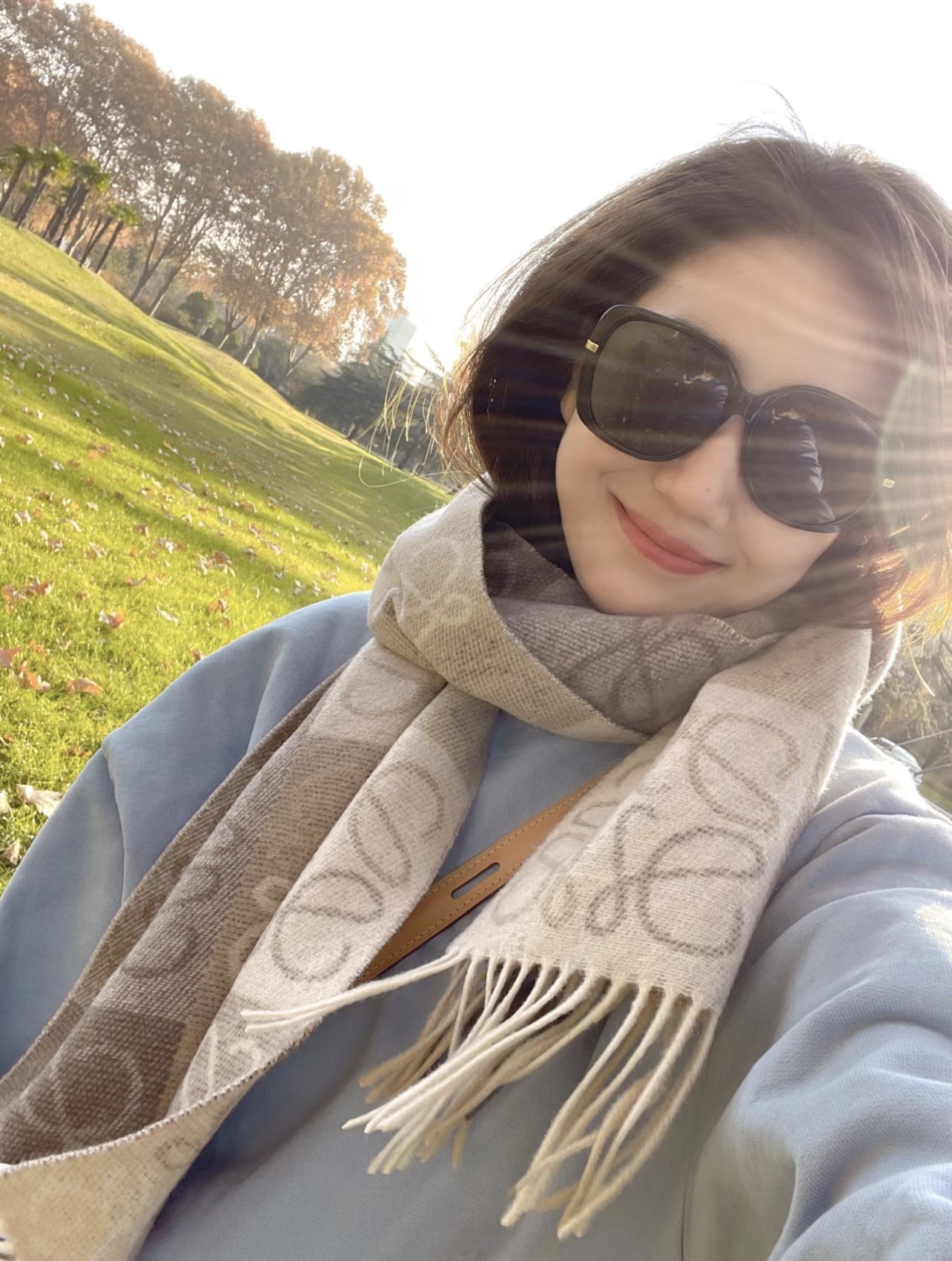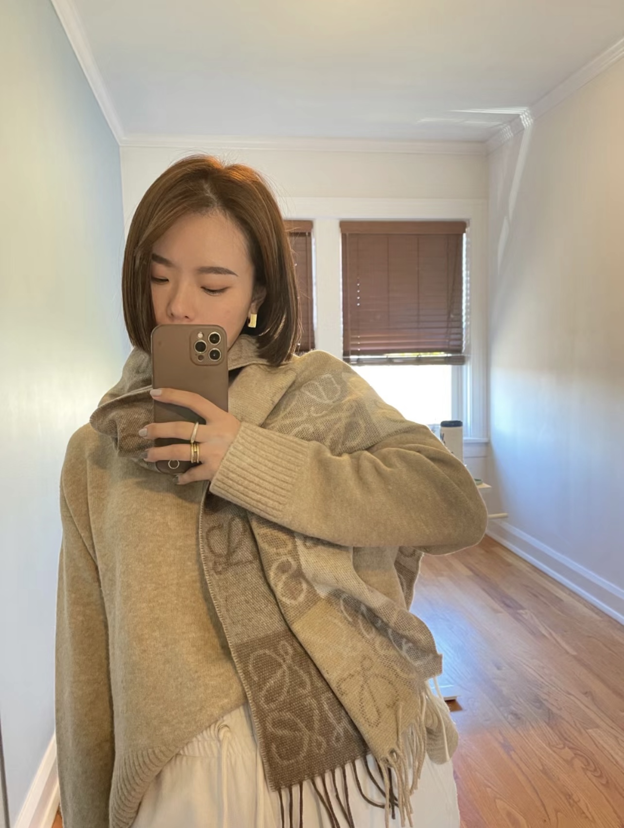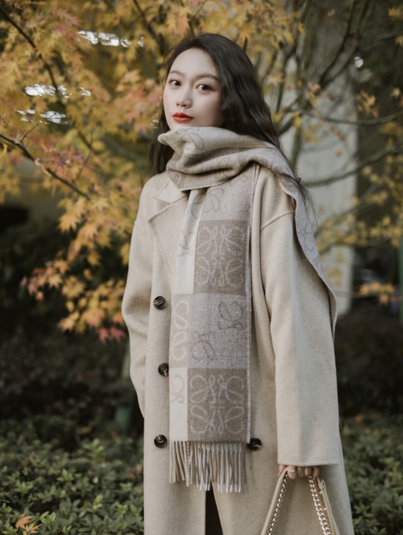Loewe这条奶茶围巾,旧版前些年我们每年都能拿到(但以前拿到的没有专柜包装,只是胡乱自己包装)。