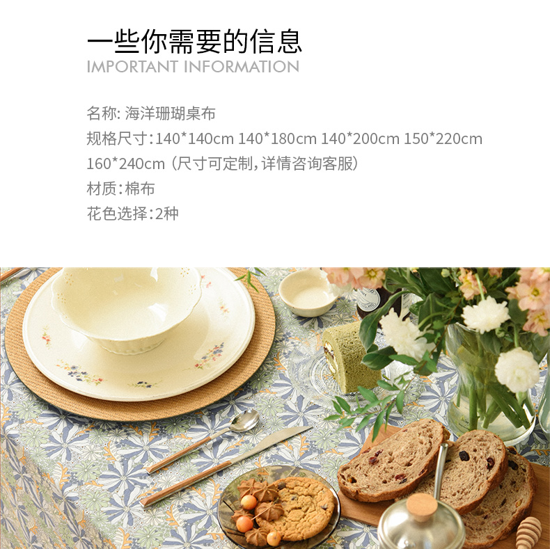 海洋珊瑚桌布客厅电视柜布艺餐桌布