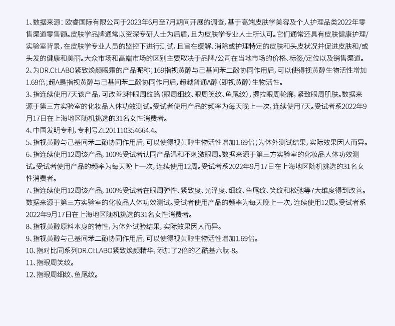 城野医生169A醇眼霜15ml 紧致抗皱(效期26年2月)