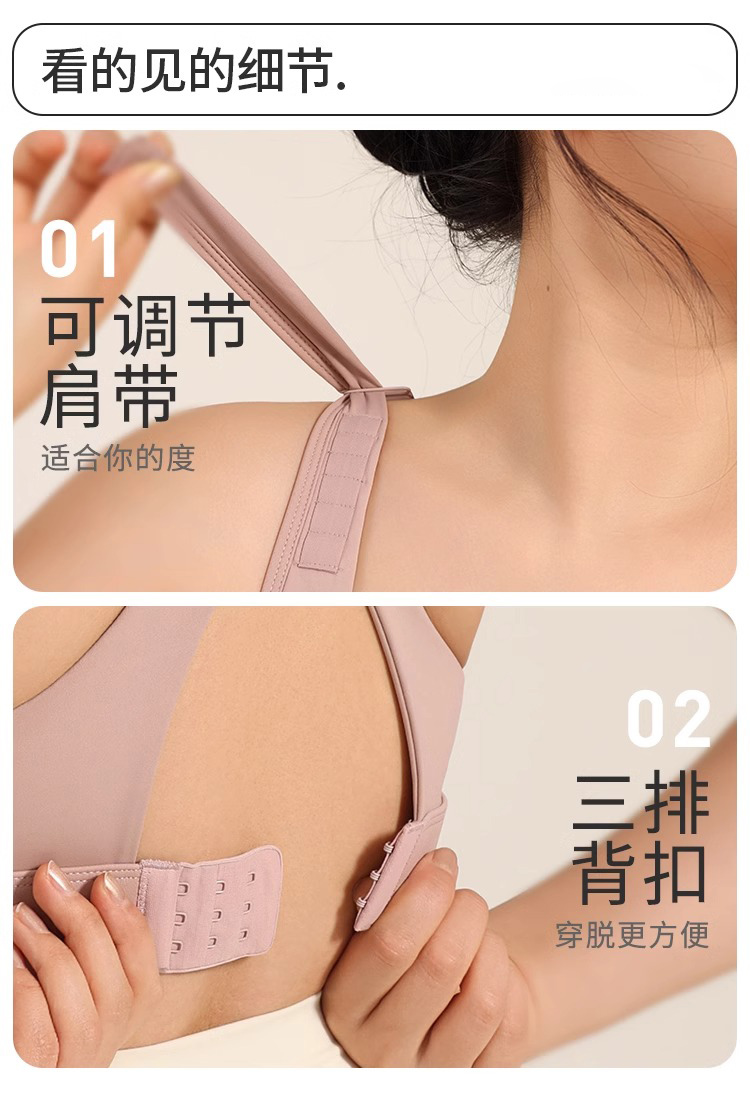 跃牌(呗咪纷纷系列)后搭扣无痕美背运动内衣女大码防震聚拢调节肩带健身braWX029