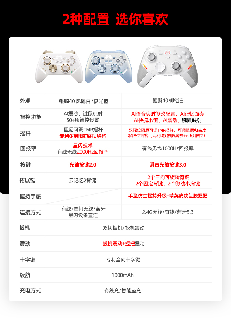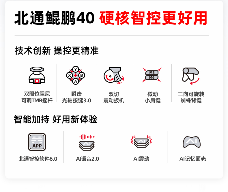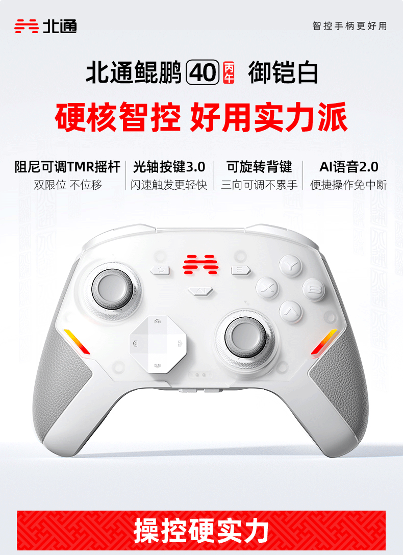 北通鲲鹏40无线游戏手柄智控蓝牙手柄 xbox电脑PC手机steam电视NSswitch2震动体感原神 御铠白