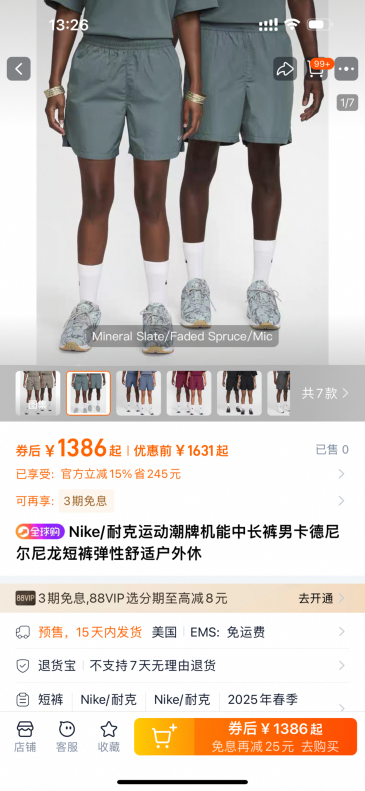 世纪联名钩子 NOCTA Cardinal 男士梭织运动短裤