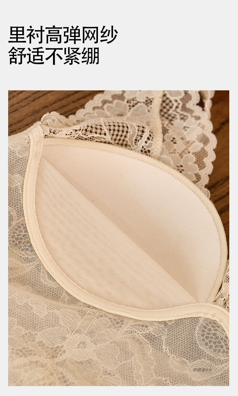 雀说莫奈花园蕾丝美背真丝内衣 桑蚕丝无钢圈收副乳内搭文胸AL248