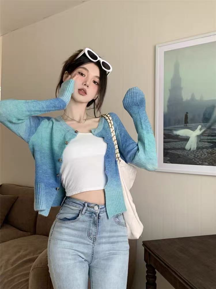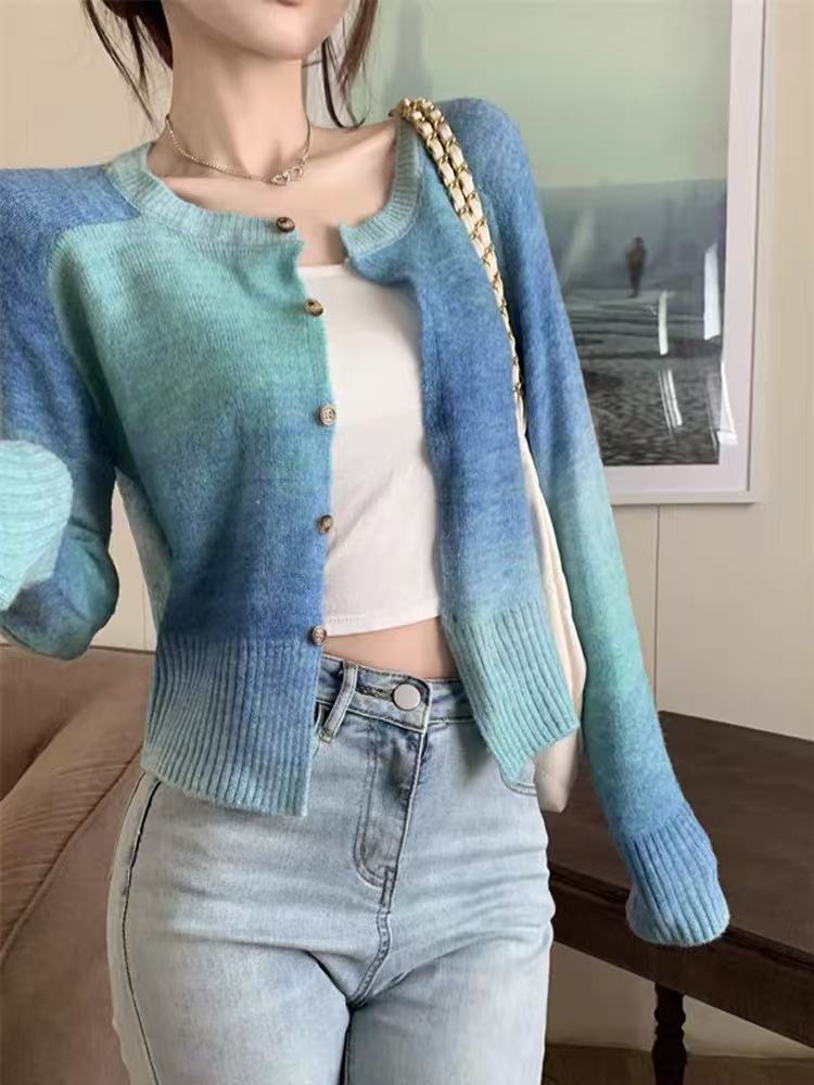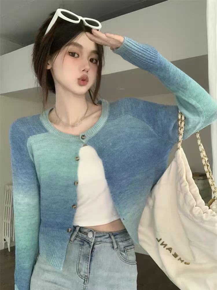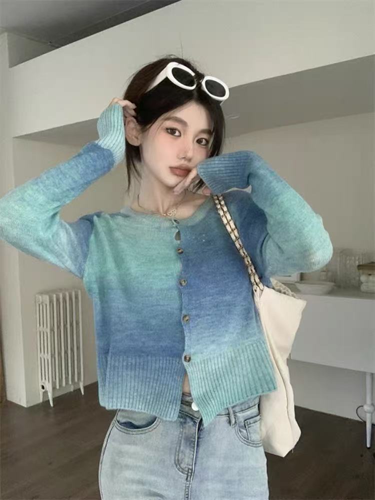 【孤品捡漏】(样衣)G78青绿中长渐变开衫毛衣-喜出