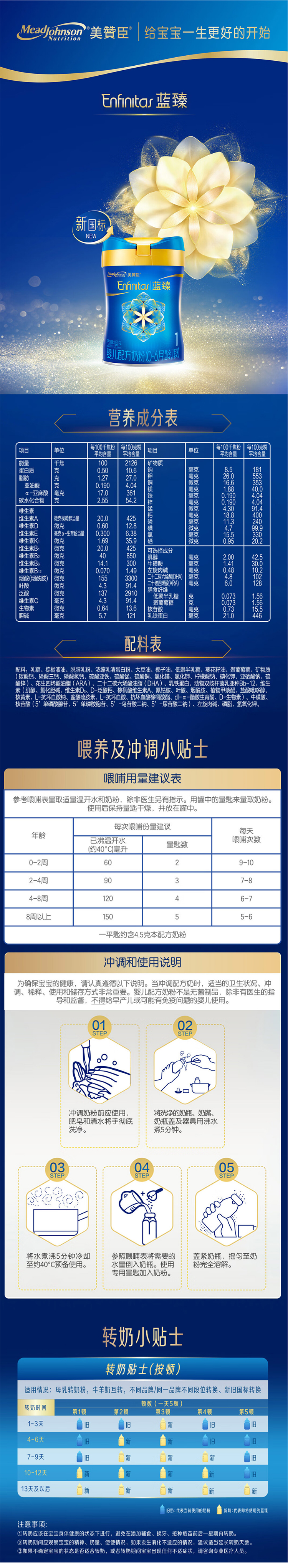 【新国标】美赞臣蓝臻婴儿配方奶粉1段820克