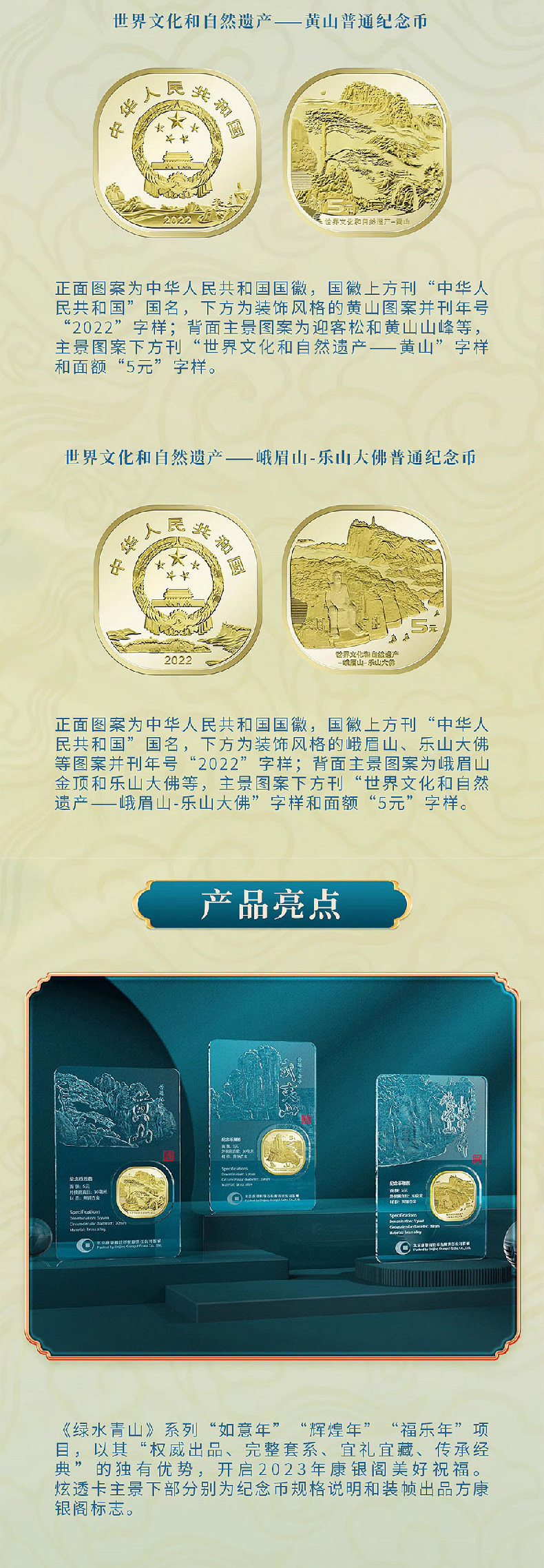 2023康银阁新品 双遗币绿水青山炫透卡 武夷山 黄山 峨眉山