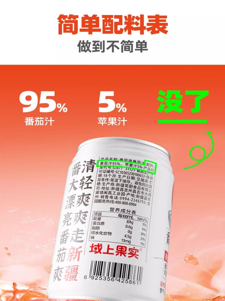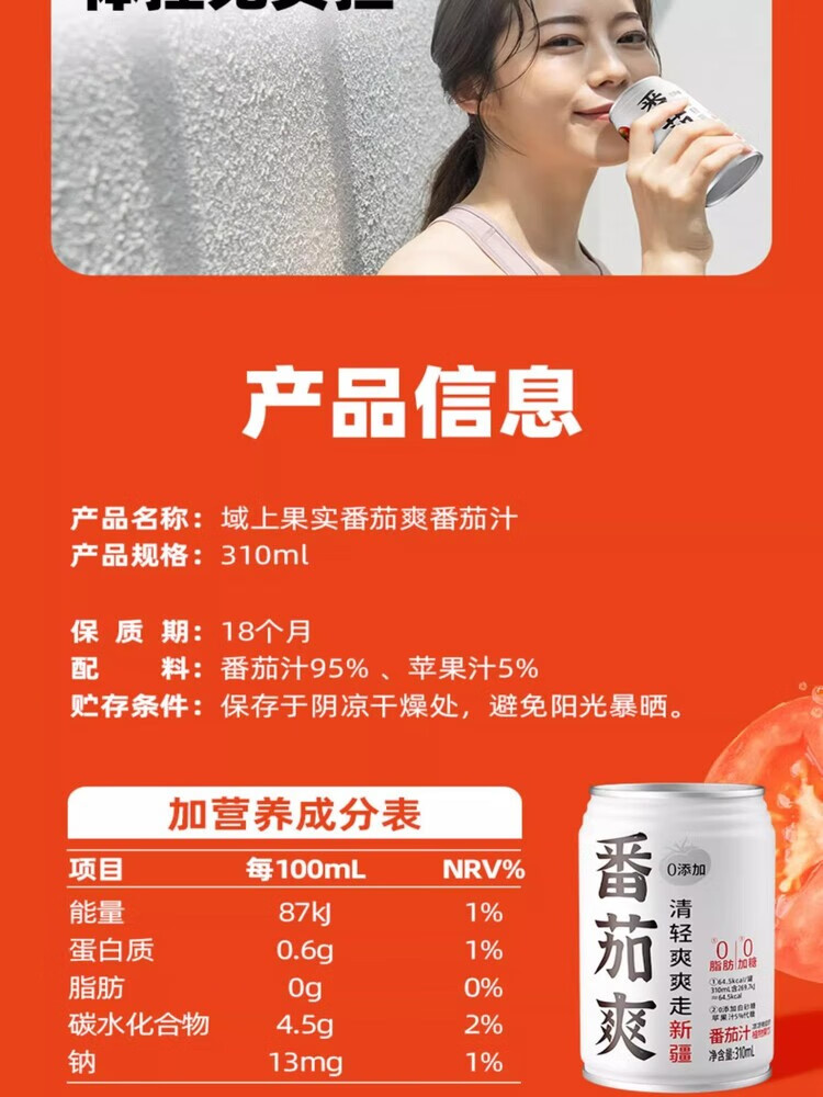 笑厨·新疆番茄爽番茄汁310ml 多规格可选 轻盈感喝出来