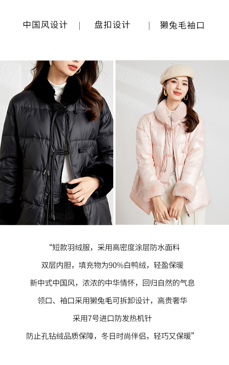 【高货kbnq】全新升级【铂金会员735/天猫989/差价254】(21147) 洛诗琳2024秋冬高级感国风小个子立领保暖短款羽绒服