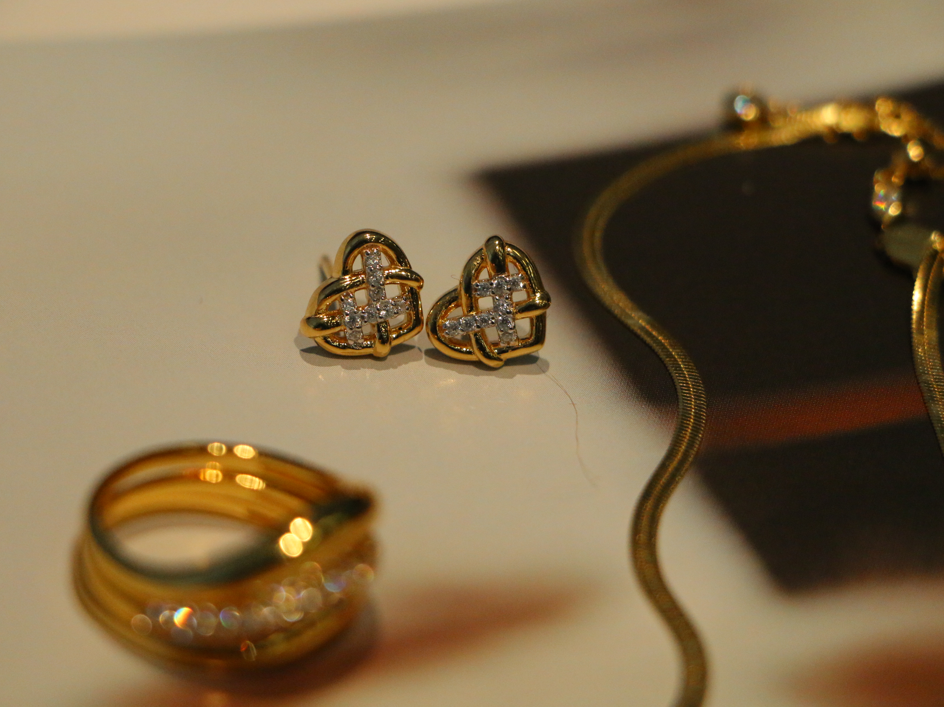 立体的爱心,配色用了金色,与银色的闪亮的锆石,厚实,很精致。日常通勤。喜欢款式的闭眼入哈,收到不会失望。