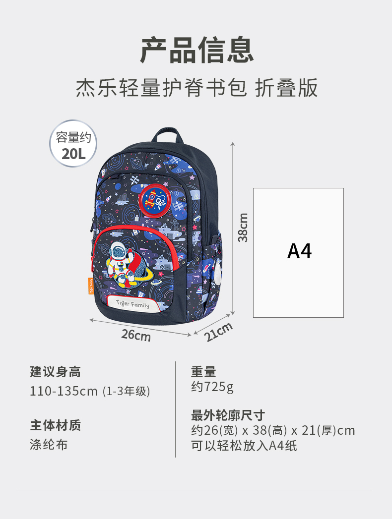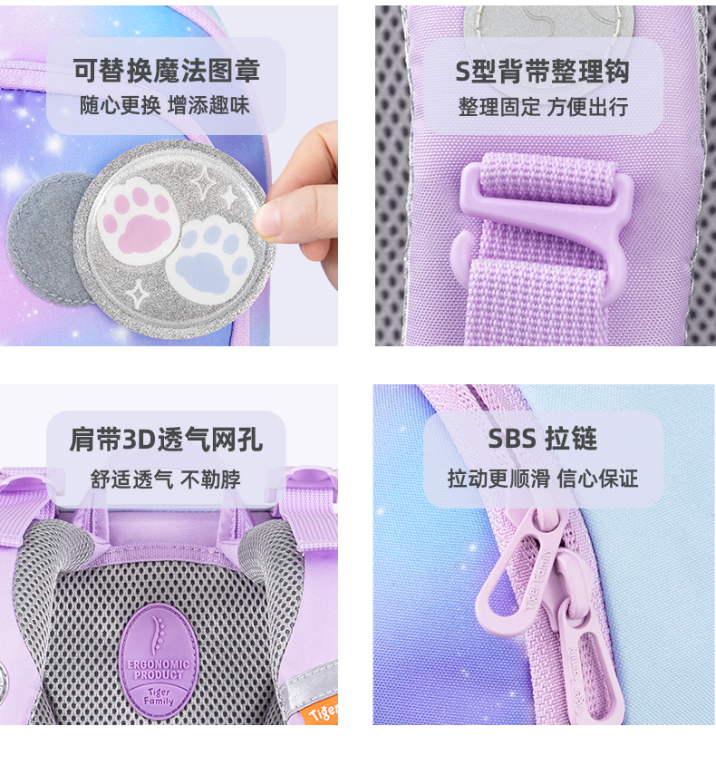 【新品】tigerfamily虎米儿童书包小学生女男孩减负护脊双肩包杰乐