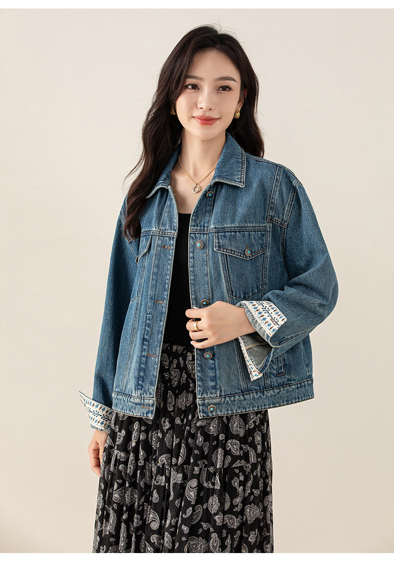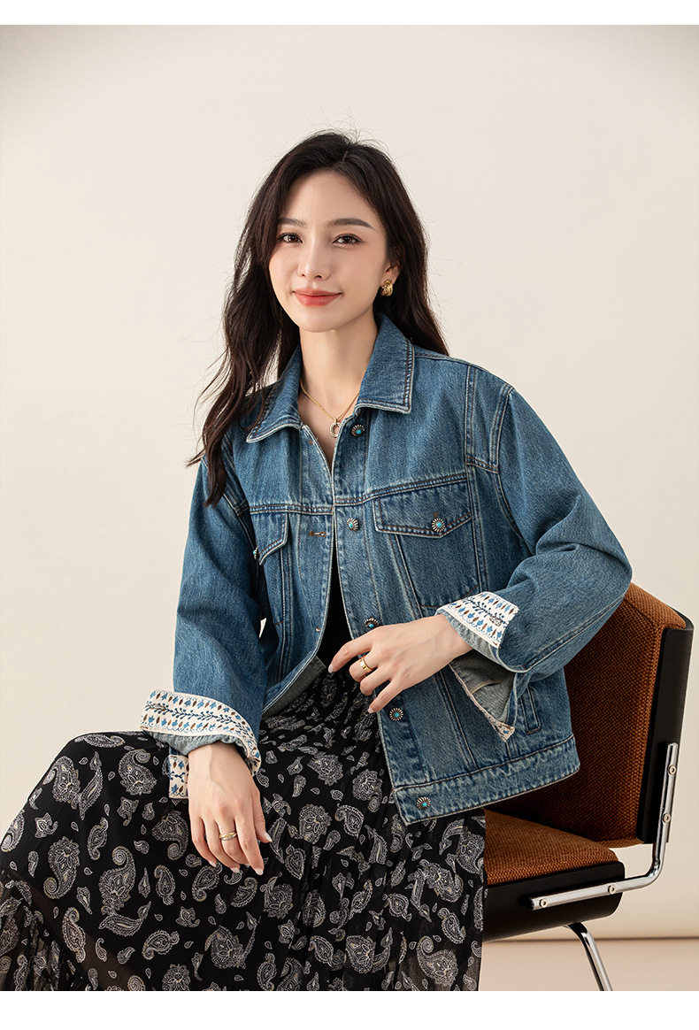 「高货xg」全新升级【铂金会员284/天猫379/差价95】(01253)洛诗琳气质休闲牛仔外套2026春季摩登复古翻领短上衣女