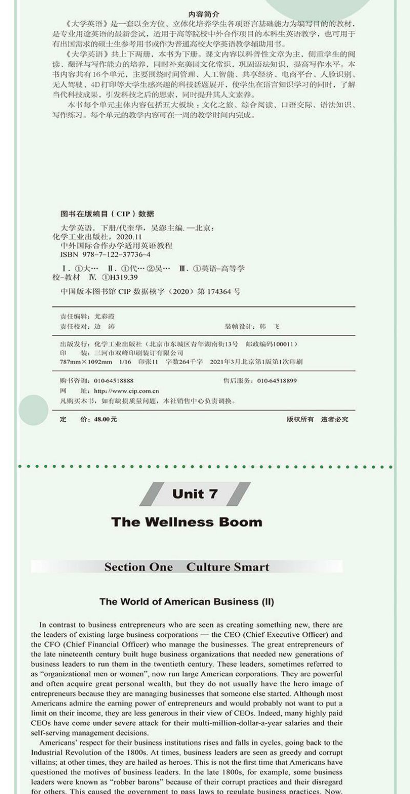 大学英语 下册 代奎华 英语语言基础能力 专业用途英语 综合阅读