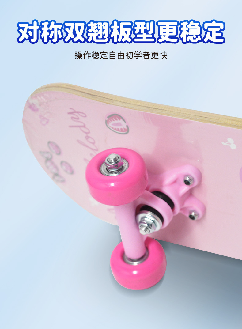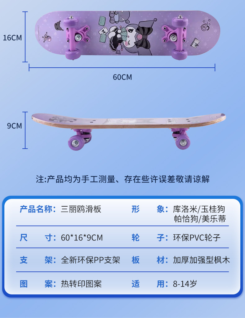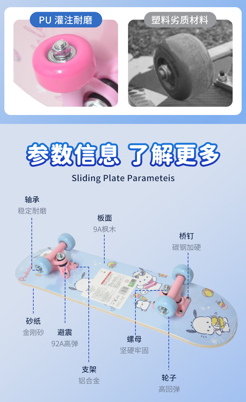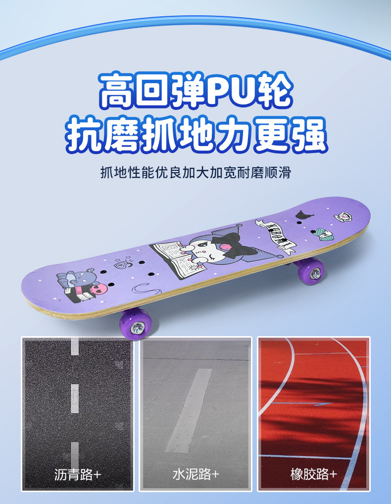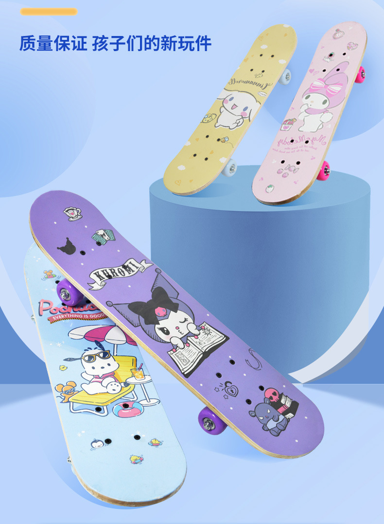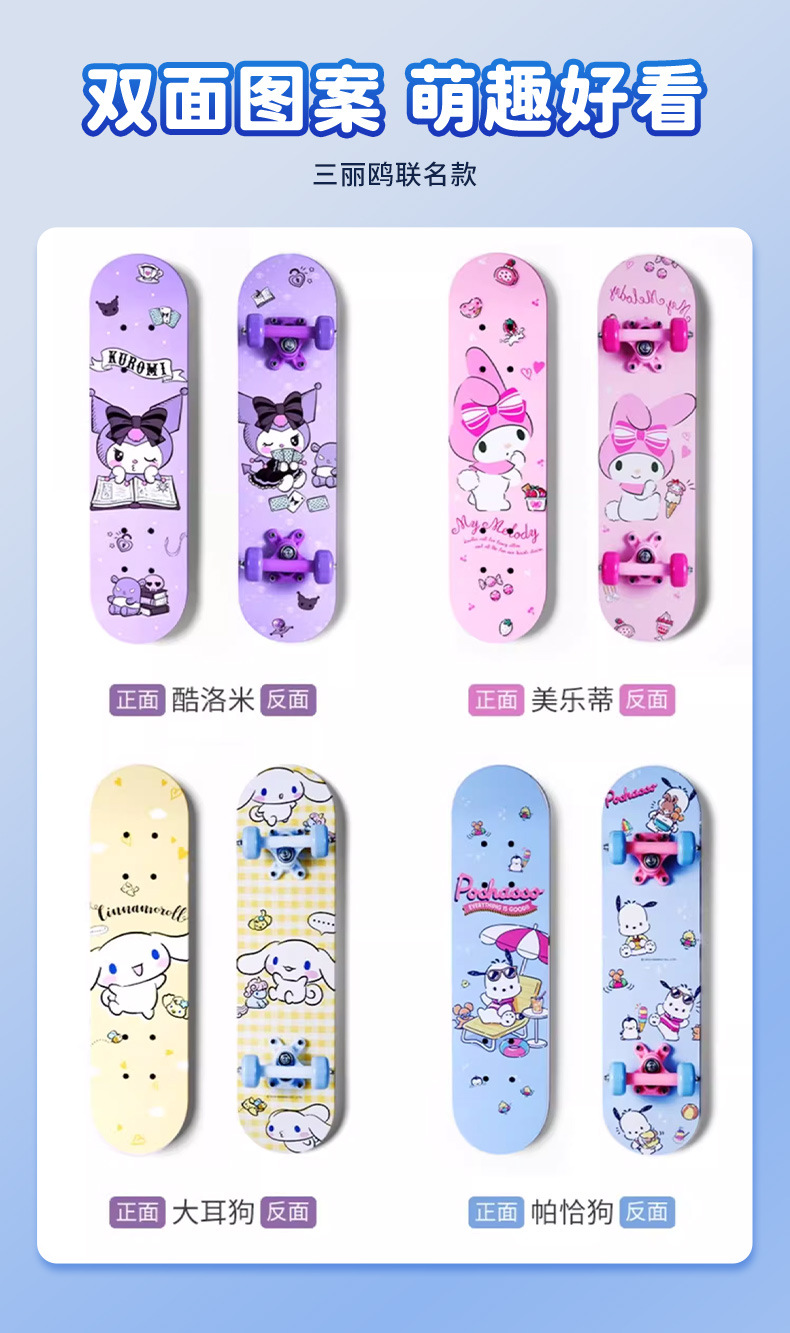 【高回弹PU轮,抗磨抓地力更强】三丽鸥正版四轮滑板车 高弹滑轮卡通双翘板 6-12岁儿童滑板车初学者-QQ