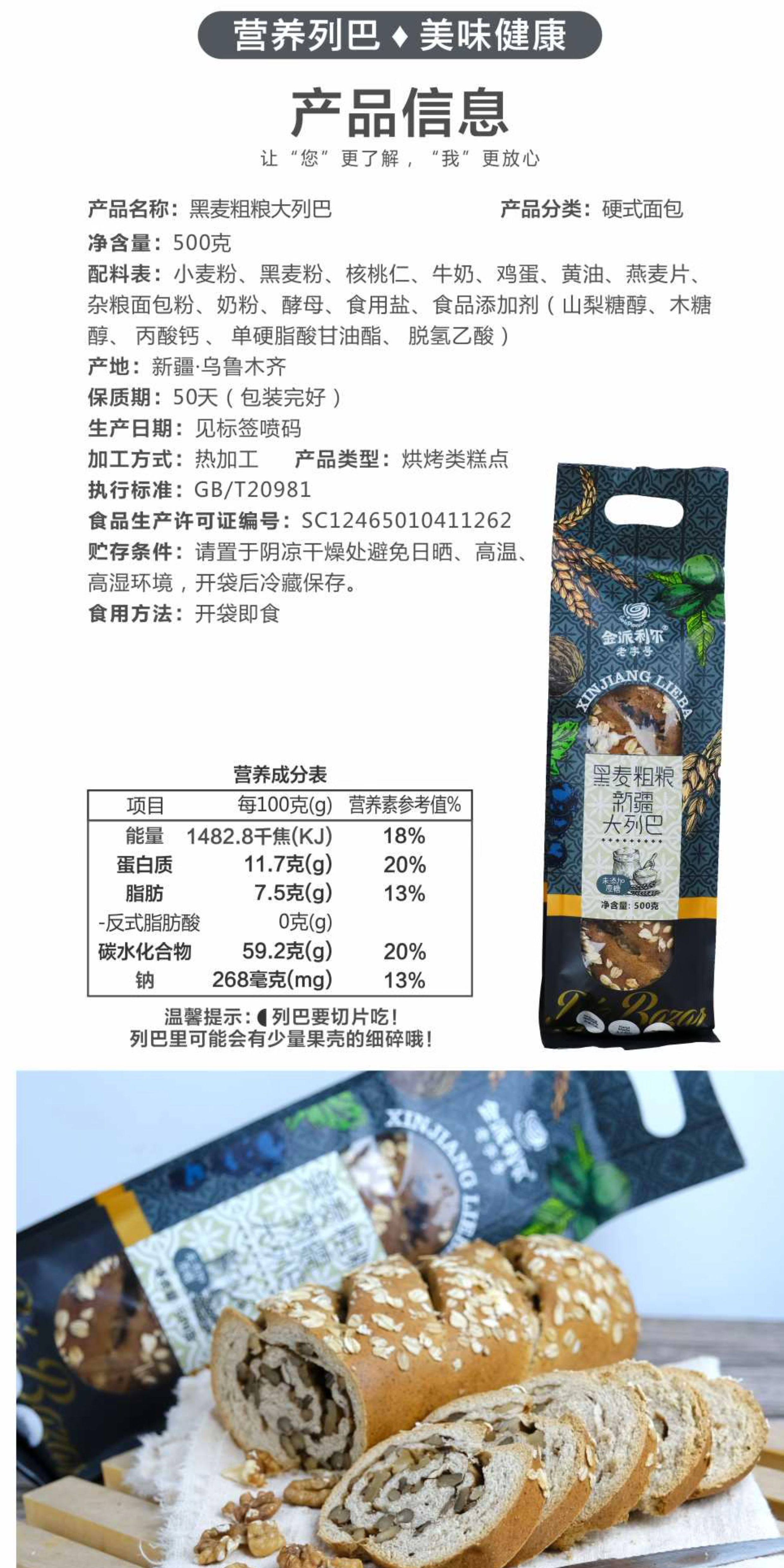 金派利尔·新疆黑麦粗粮列巴500g 营养从早餐开始