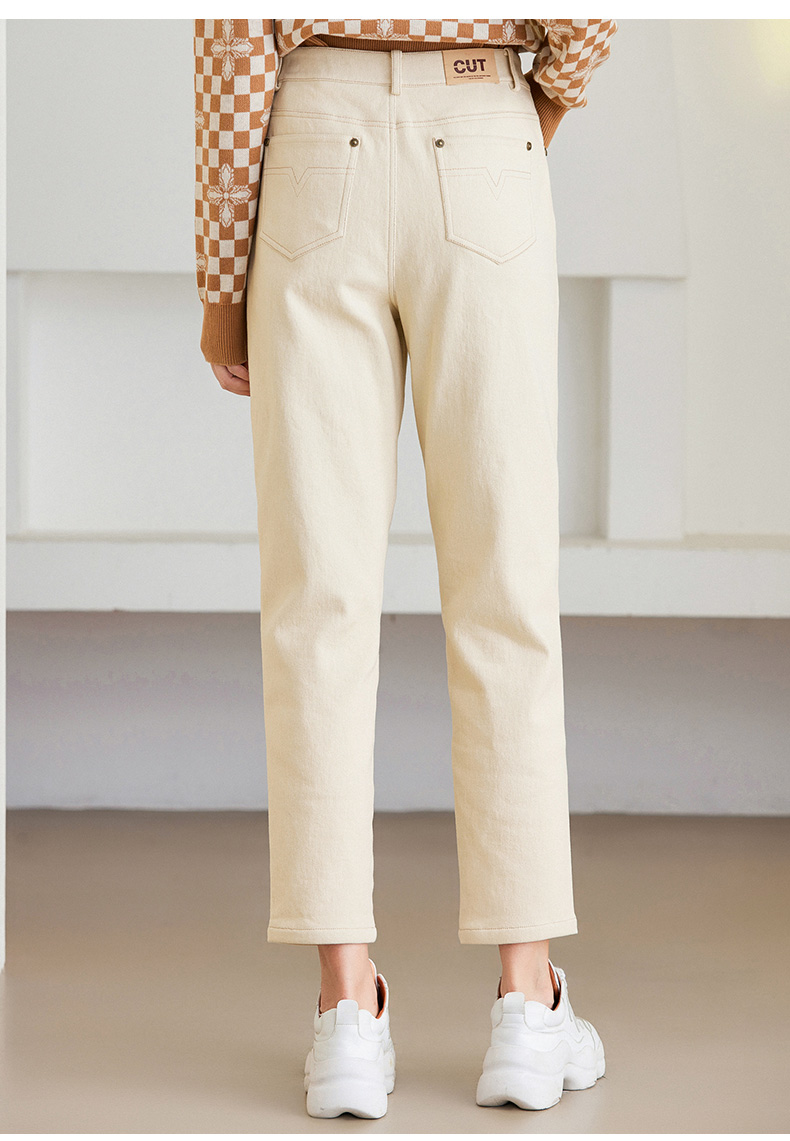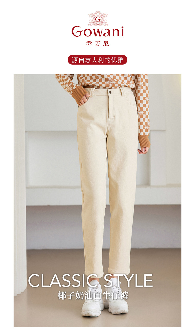 乔万尼新品牛仔裤奶油白减龄百搭休闲裤ET4F811
