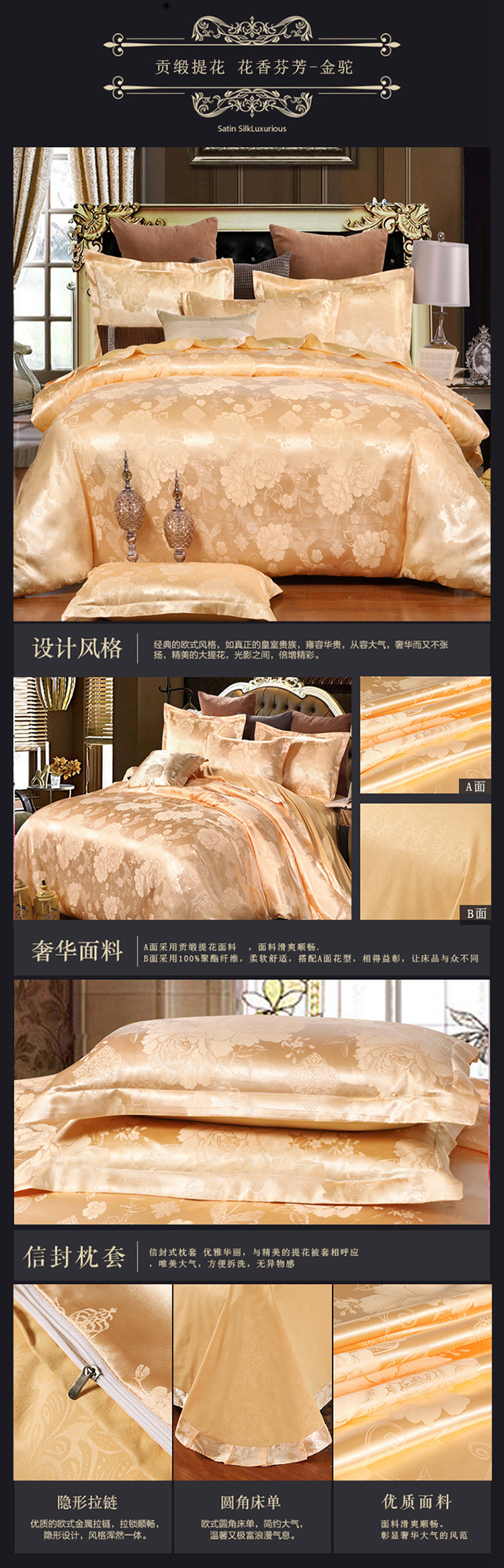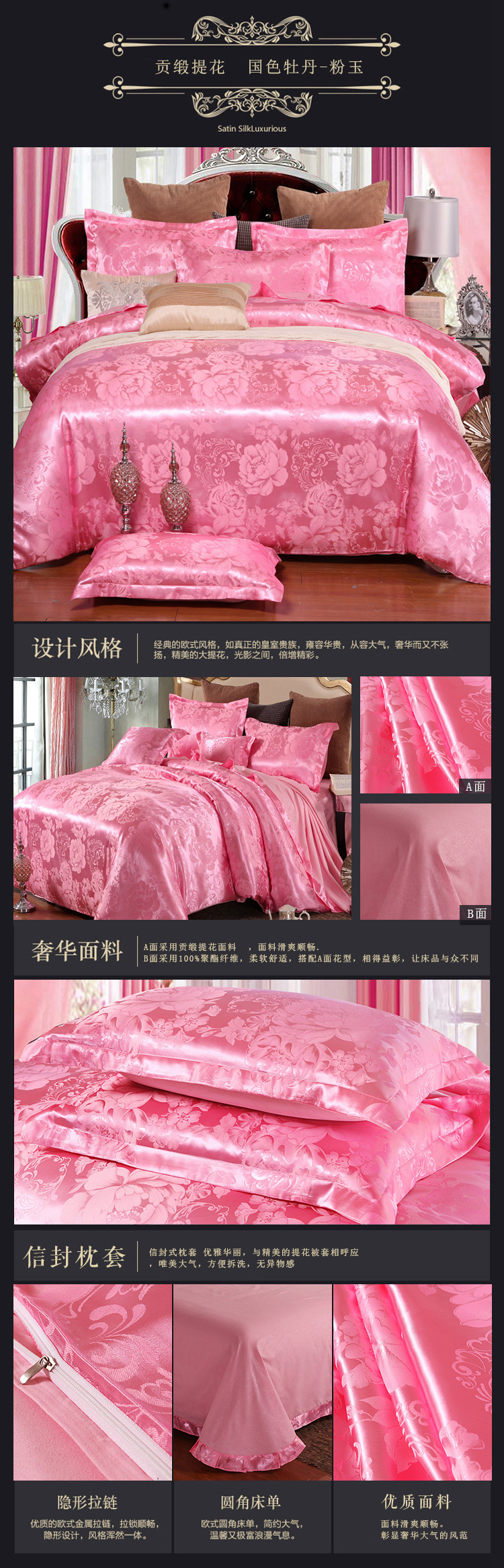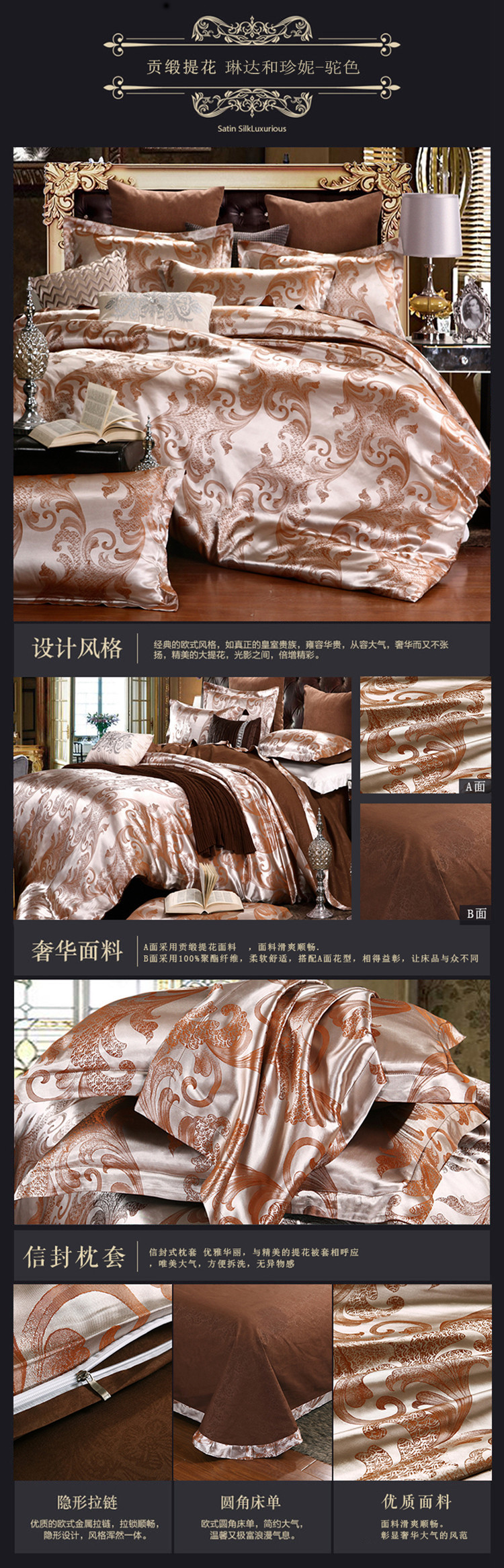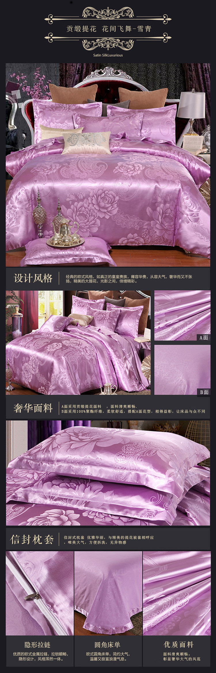 【微爆款】 丝绵贡缎68提花四件套 一件代发 团购 加V永享优惠