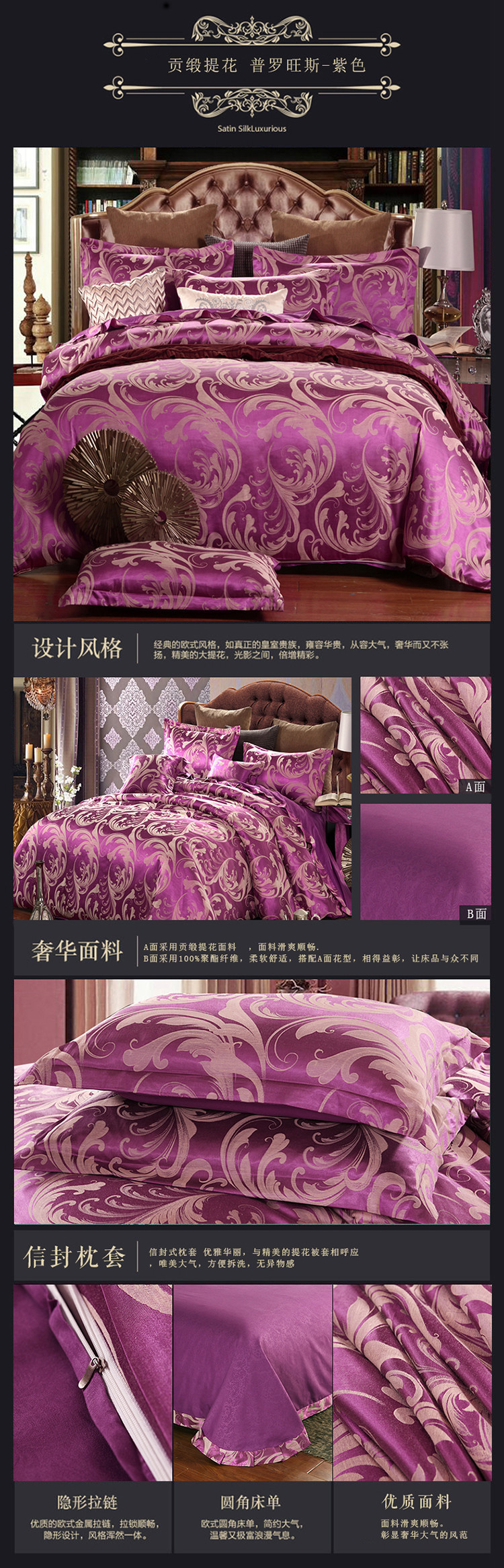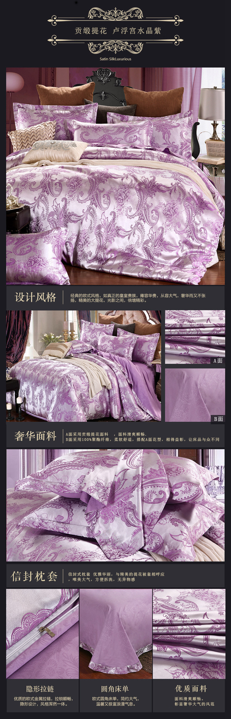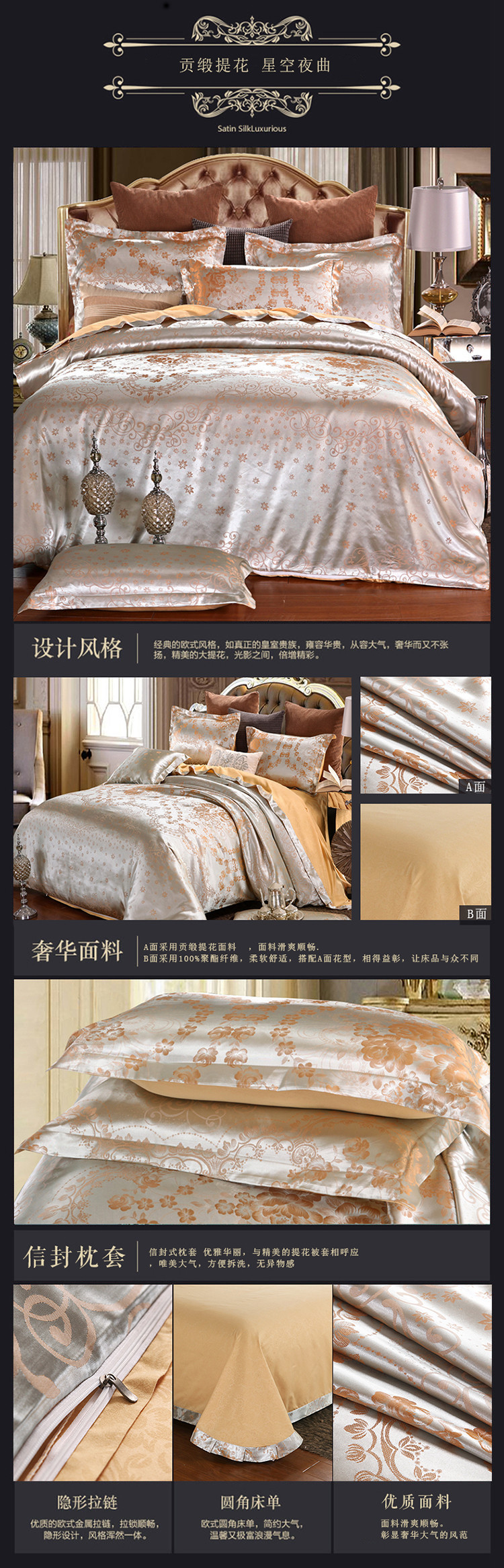 【微爆款】 丝绵贡缎68提花四件套 一件代发 团购 加V永享优惠