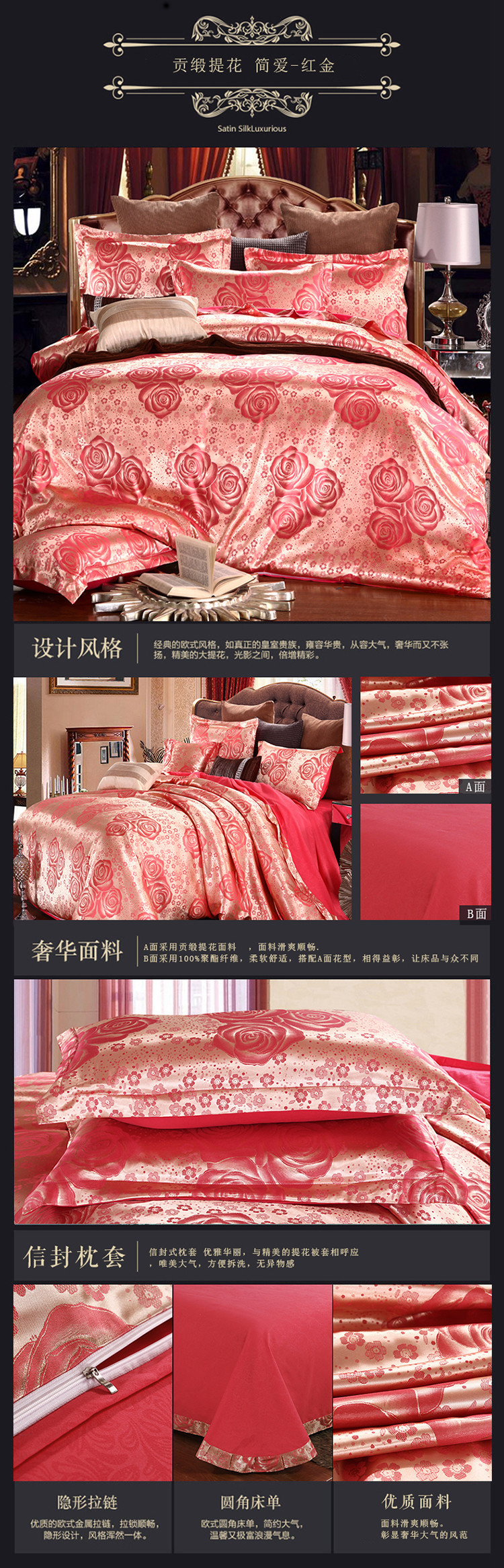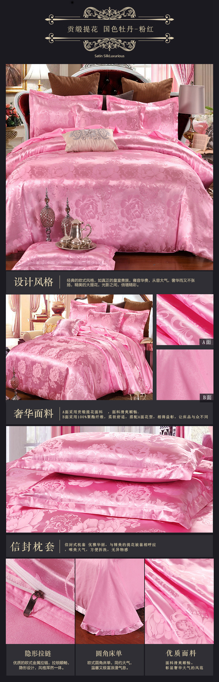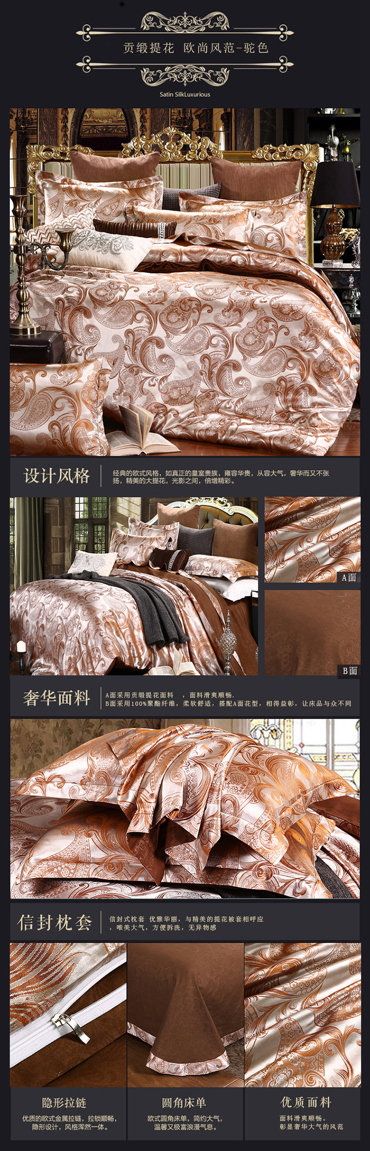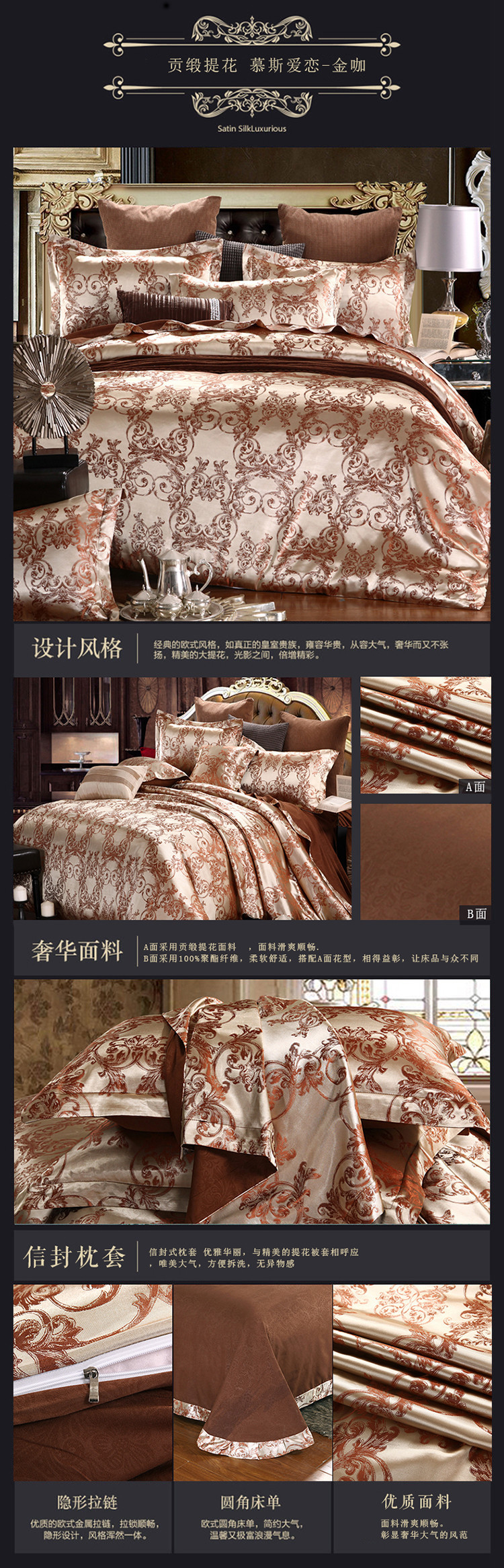 【微爆款】 丝绵贡缎68提花四件套 一件代发 团购 加V永享优惠