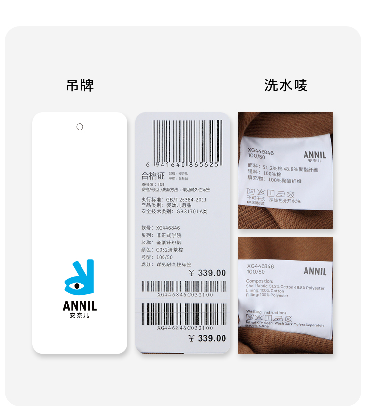 女童保暖舒弹棉裤冬季新款安奈儿童装实体店同款XG446846