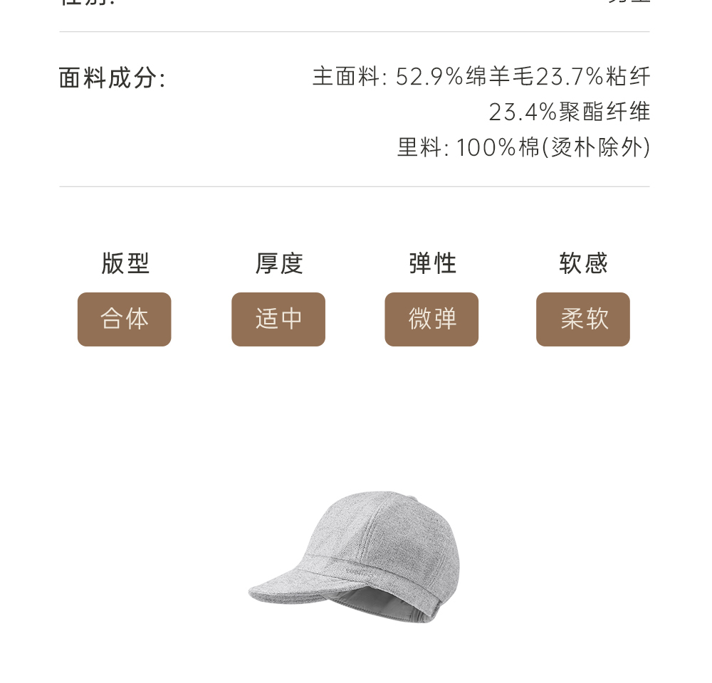 【商场同款】英氏婴儿帽子秋款男宝宝绵羊毛保暖鸭舌帽秋款