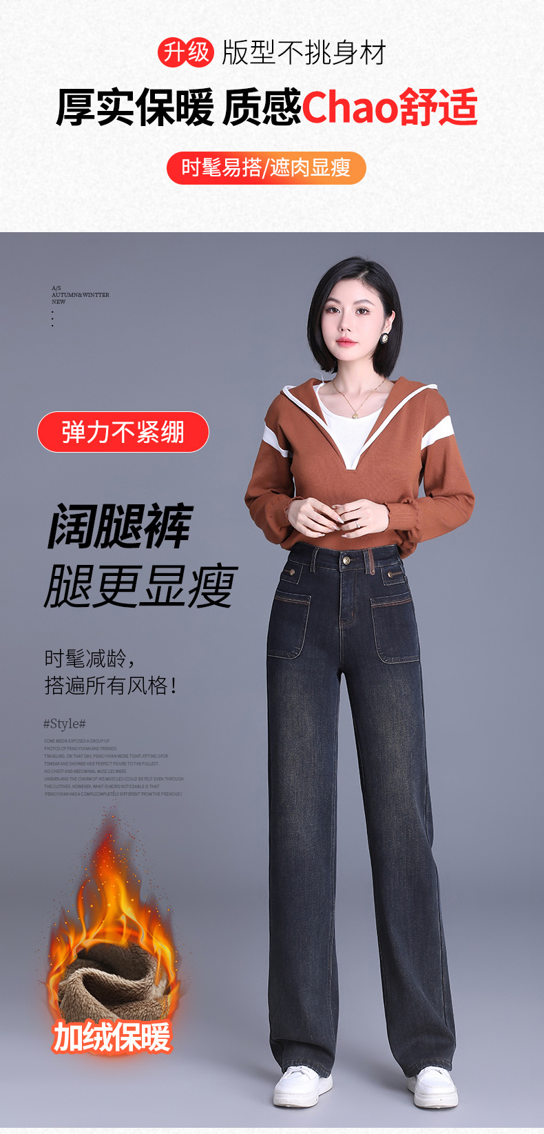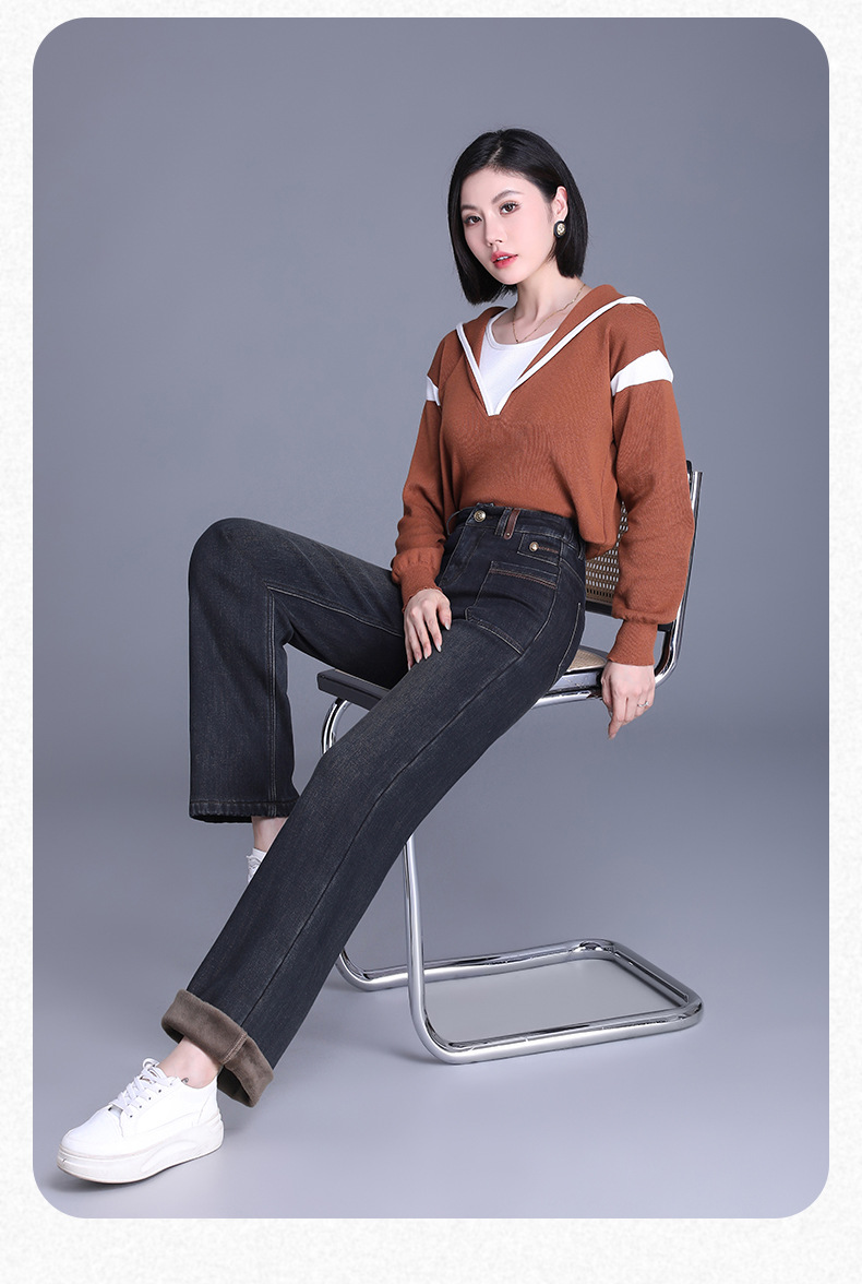 加绒时尚修身直筒裤,高腰修身时髦气质休闲裤MYX-BFZY-3537-L