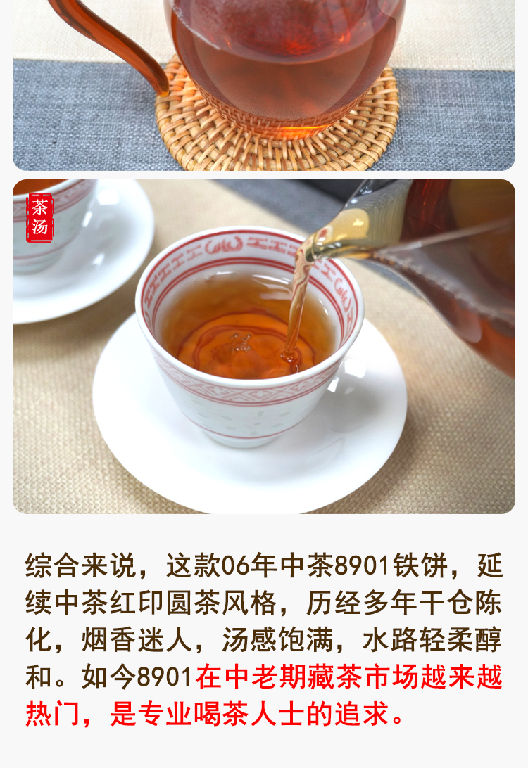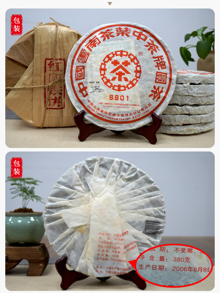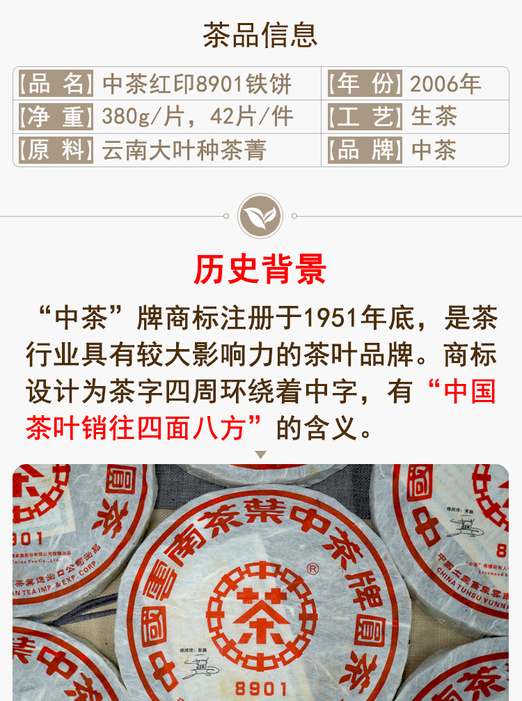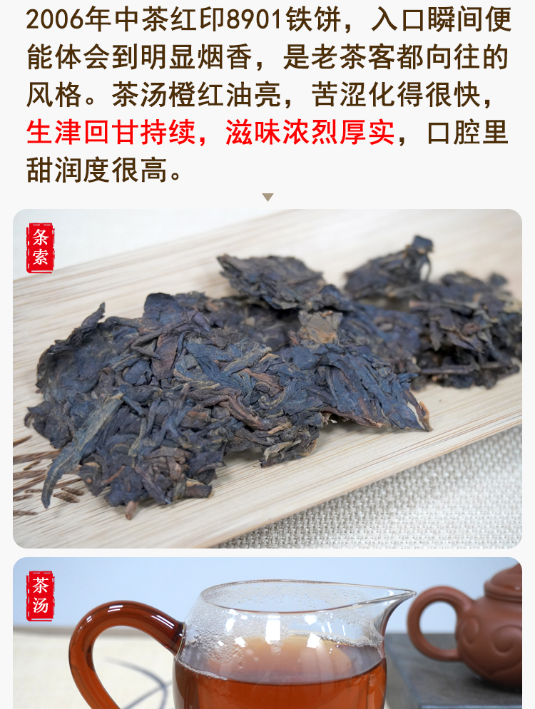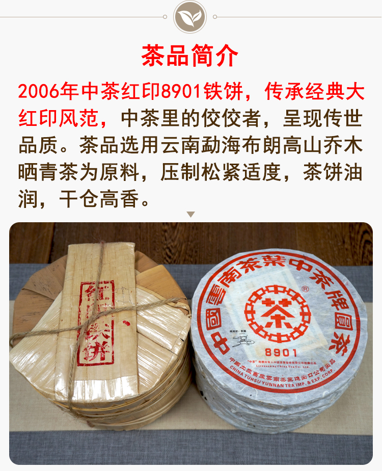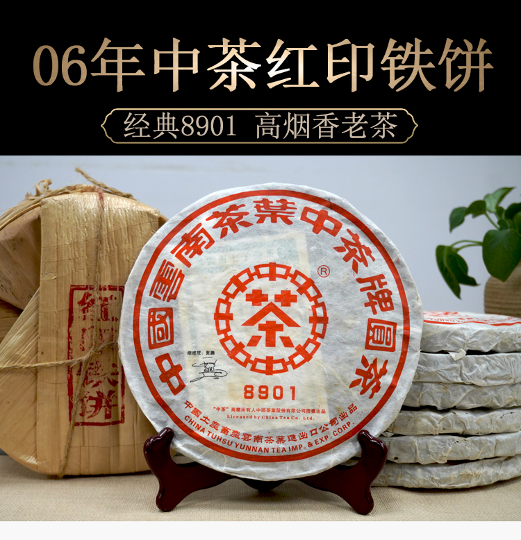 【爆烟香高烟香经典大品牌老生茶】2006年中茶8901红印铁饼 非常好撬 一片380克 高烟香经典普洱茶老生茶 干仓真品大品牌出品 很推荐大家喜欢高烟香回甘好的朋友品鉴