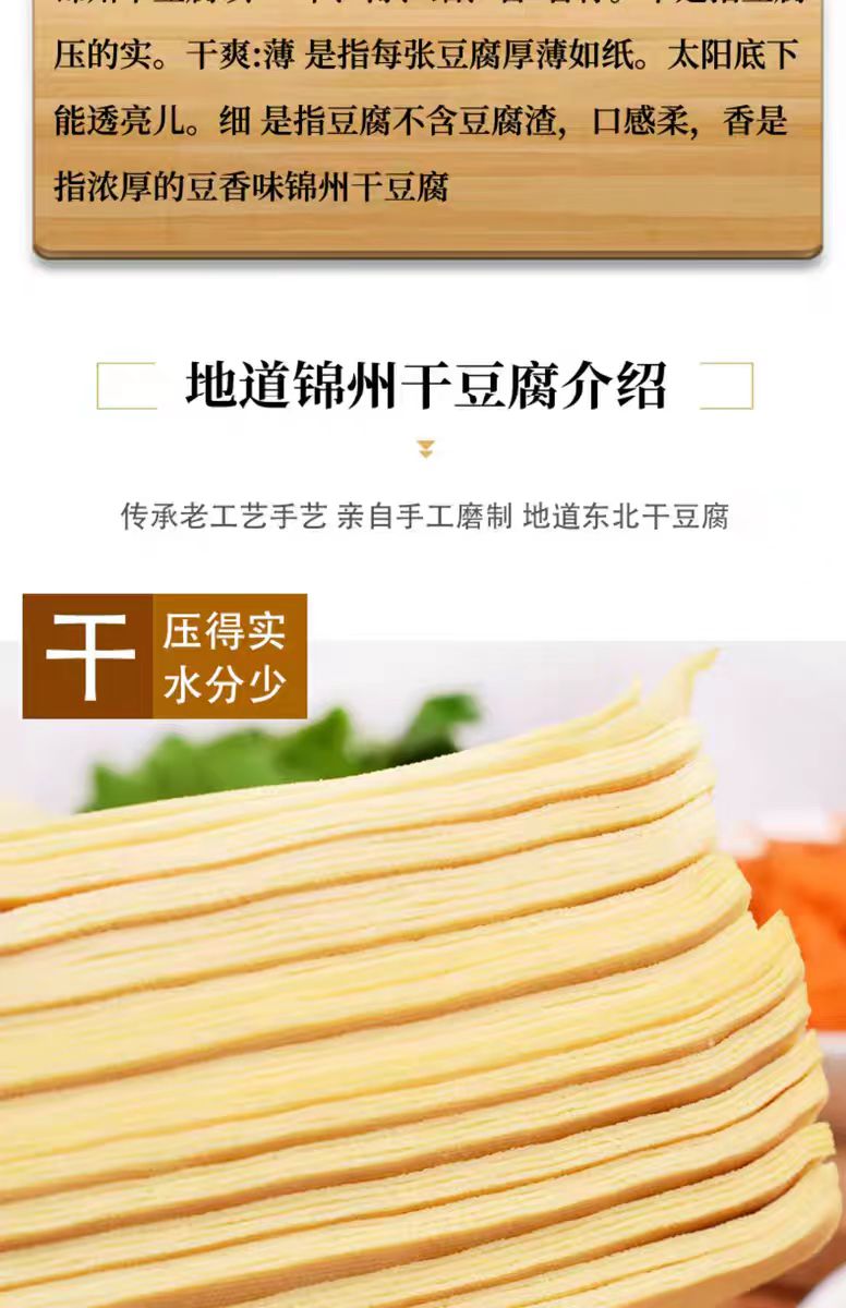 【豆制精选】锦州非遗千张干豆腐 配料只有精选大豆 水和卤水 非遗技艺传承+纯手工工艺 薄如蝉翼 韧而不破 吃法多样