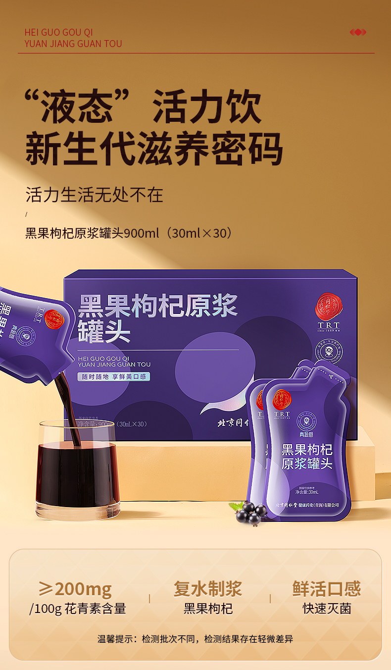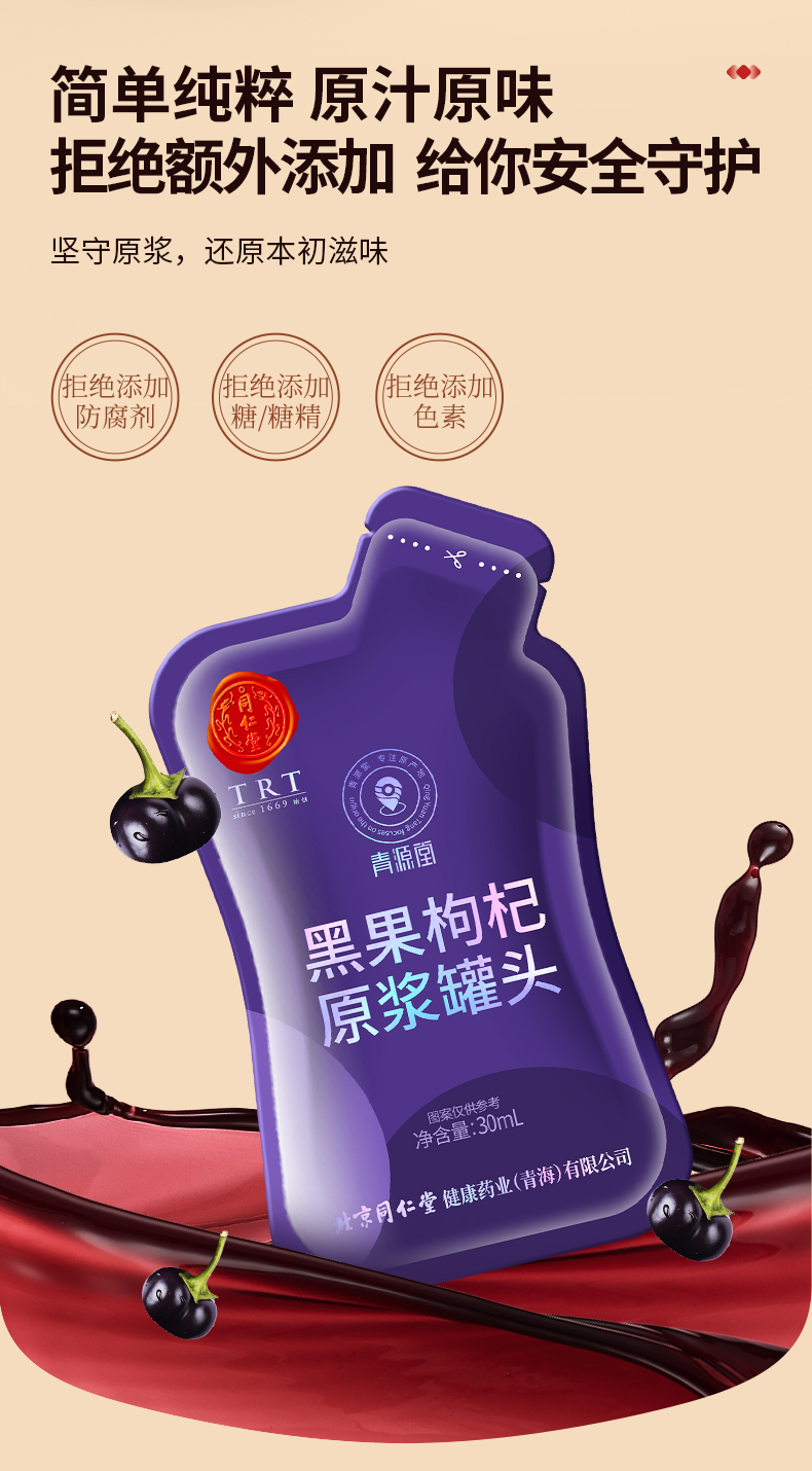 【正宗同仁堂品牌】北京同仁堂 黑果枸杞原浆-900ml(30ml*30袋) 优质花青素 SY