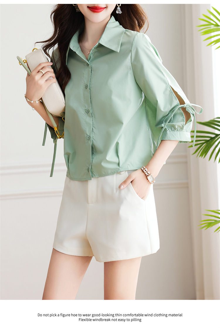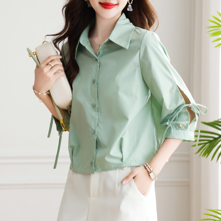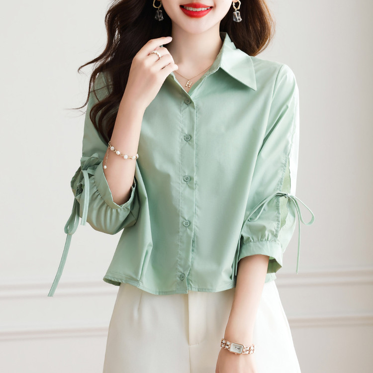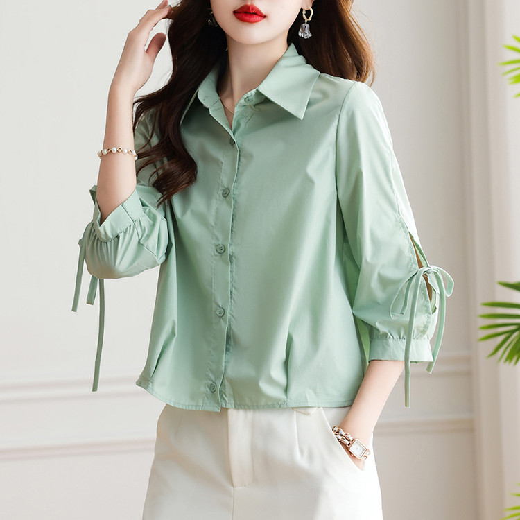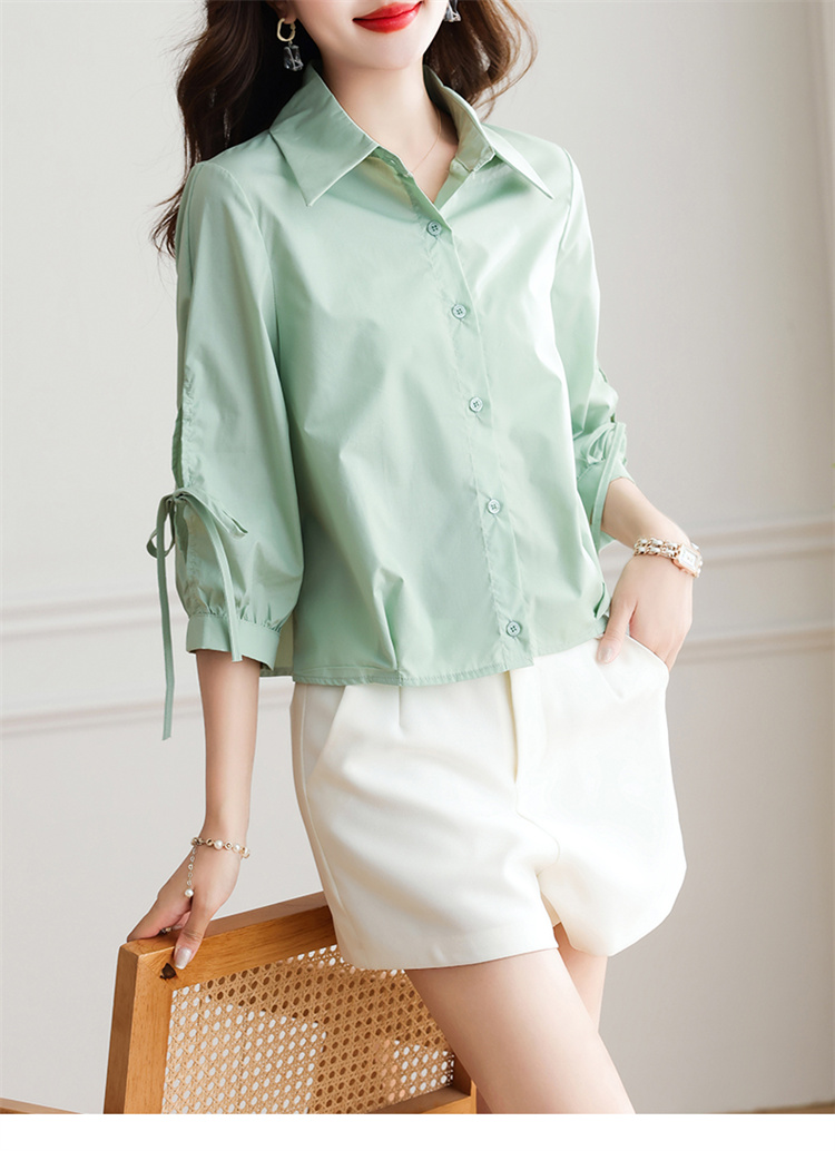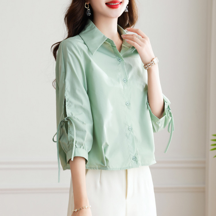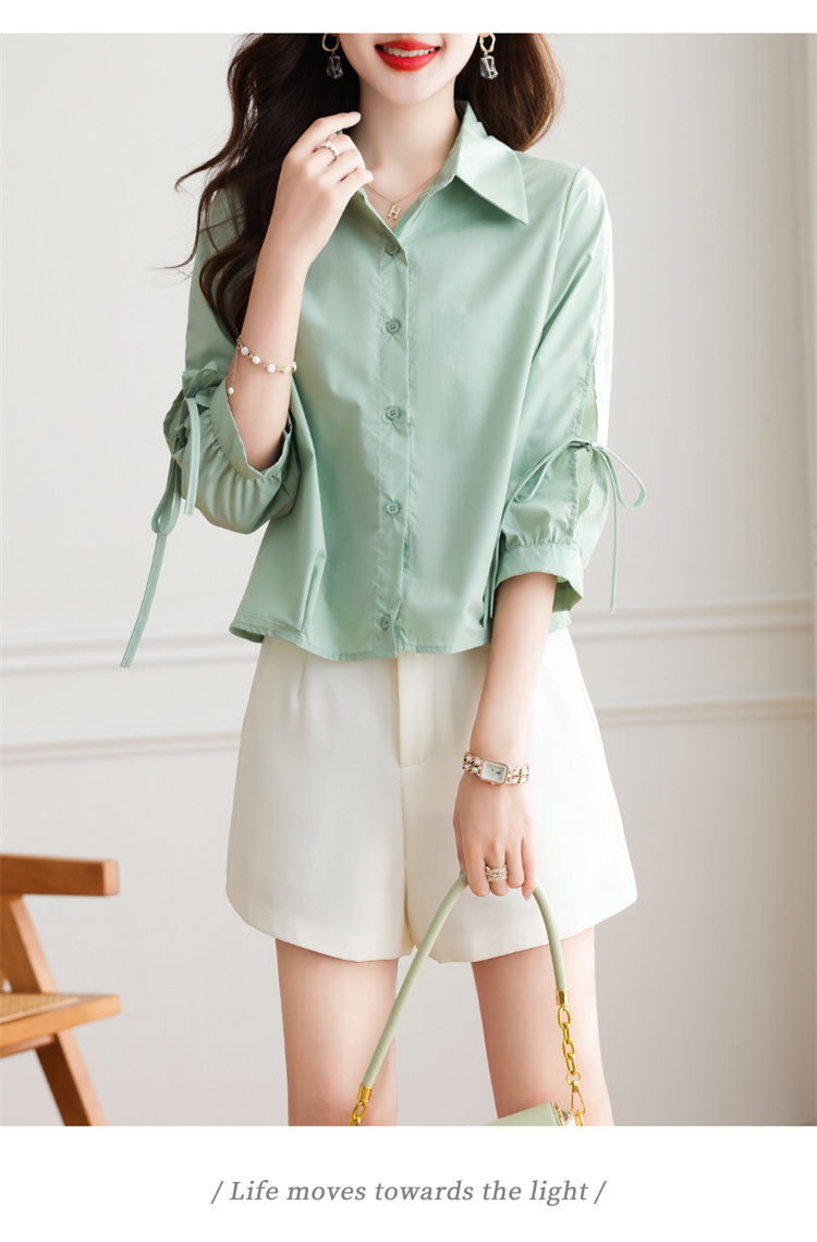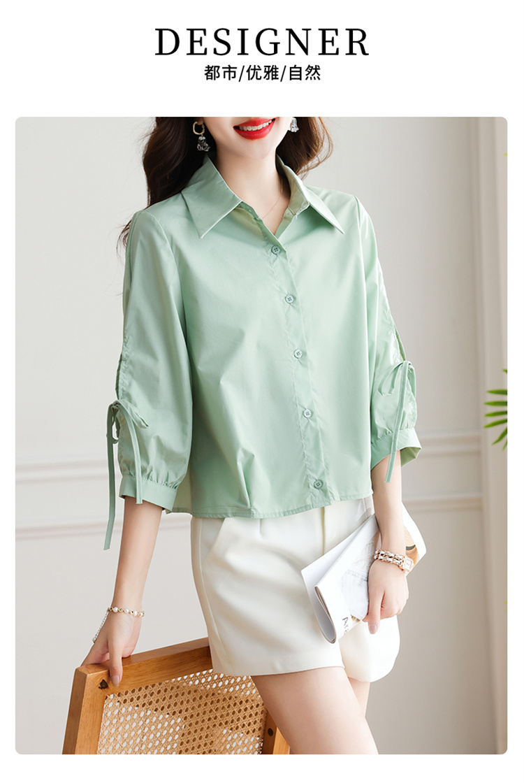 【预售3天】PY 早秋季七分袖绿色薄款衬衫 -1063