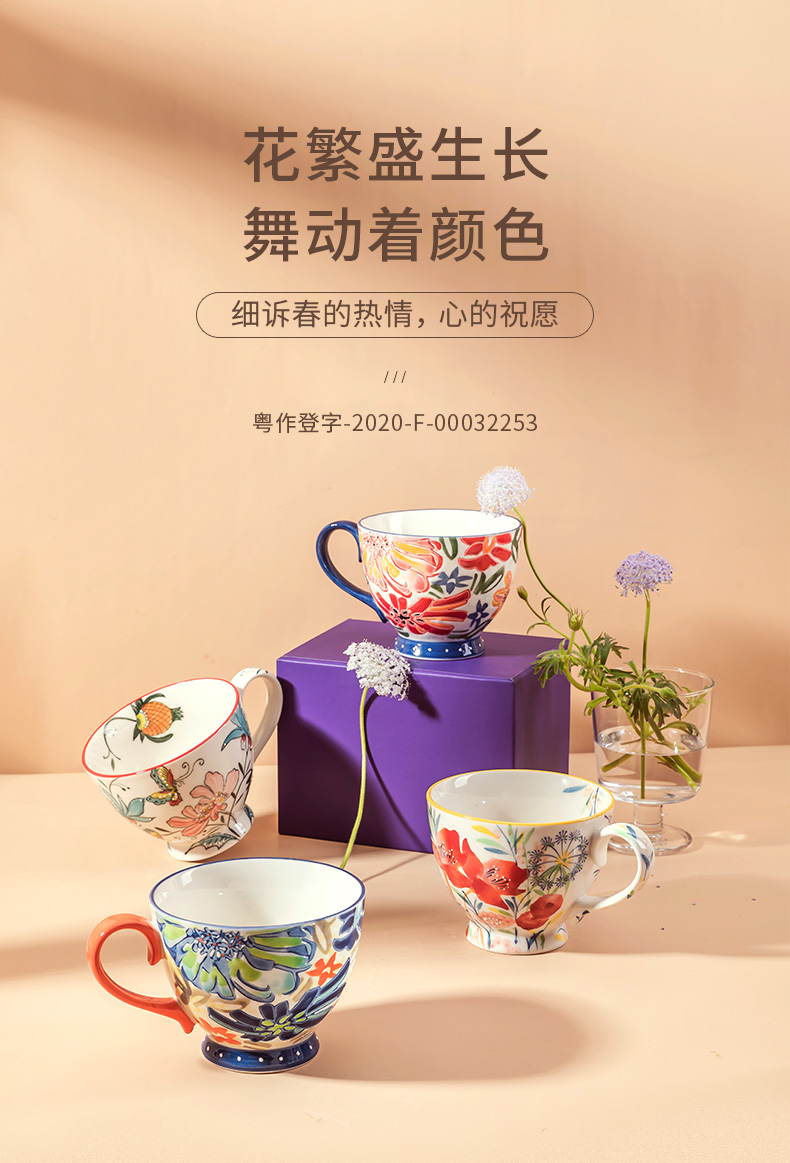 中国JOYYE套4花愿对杯套装混色水杯