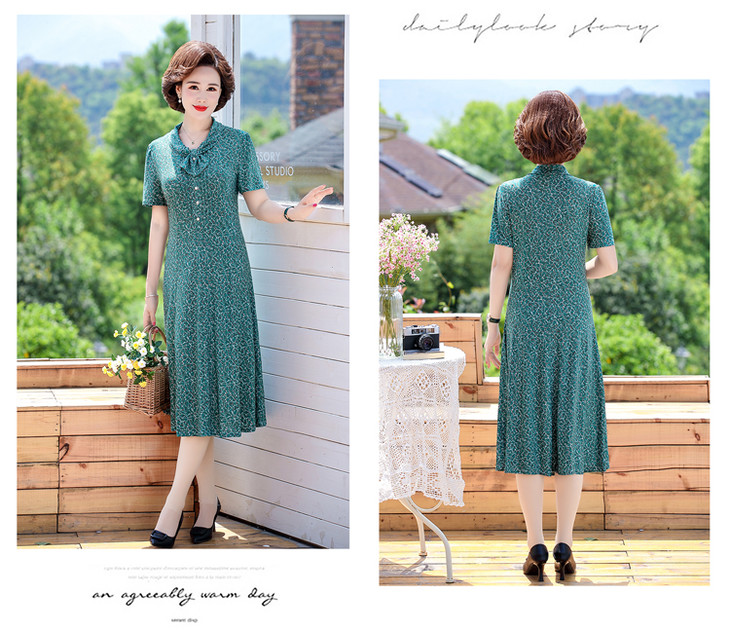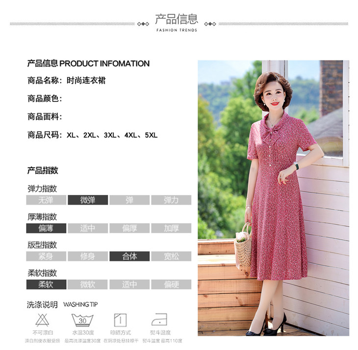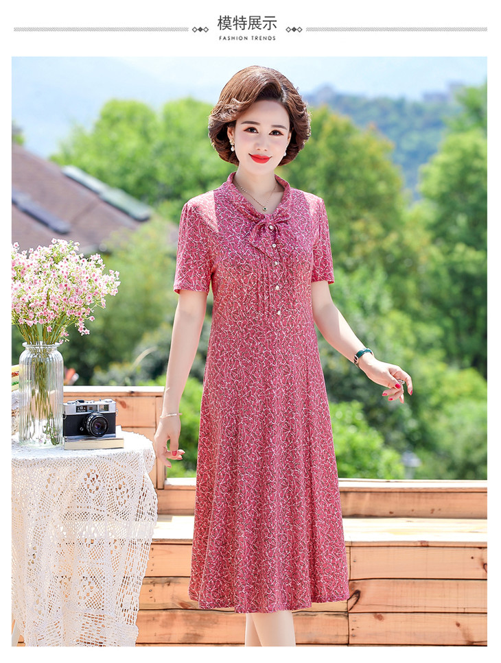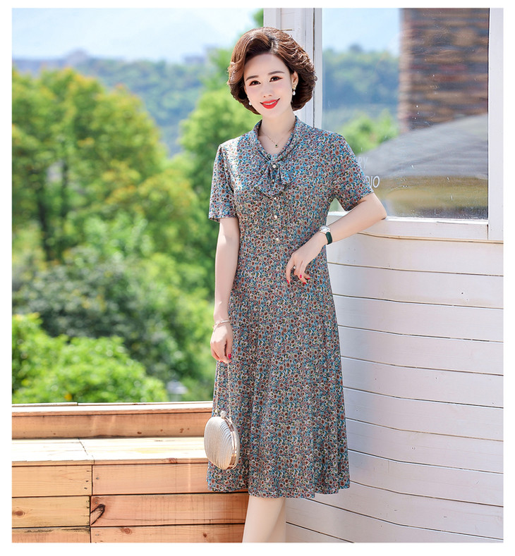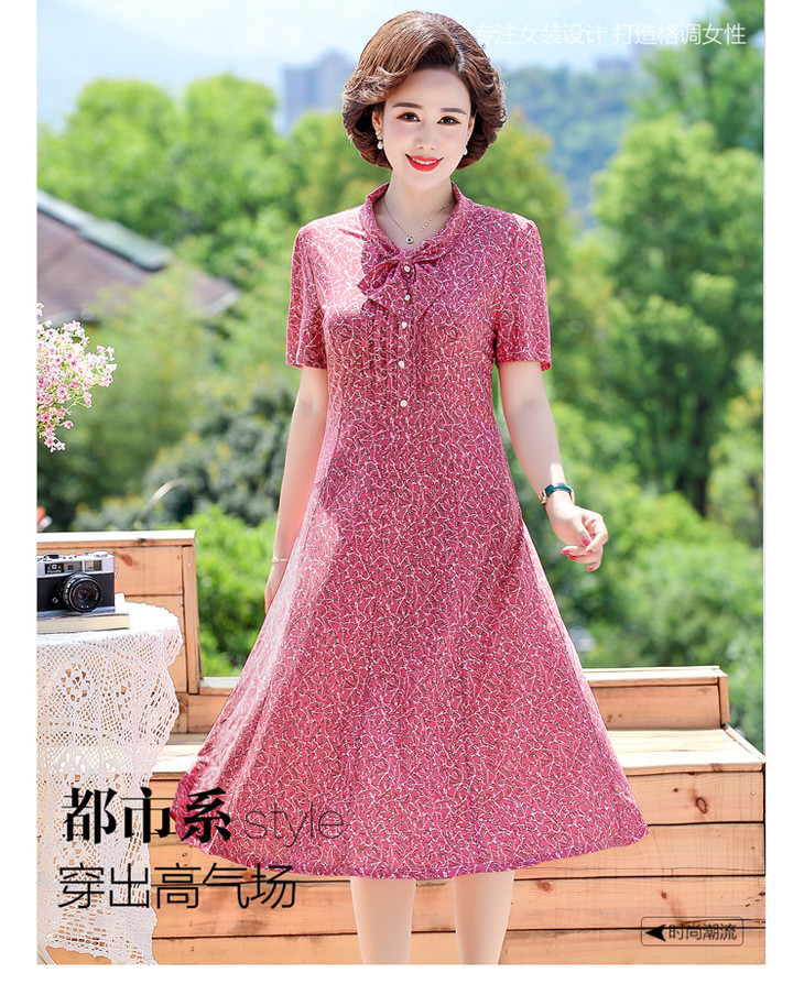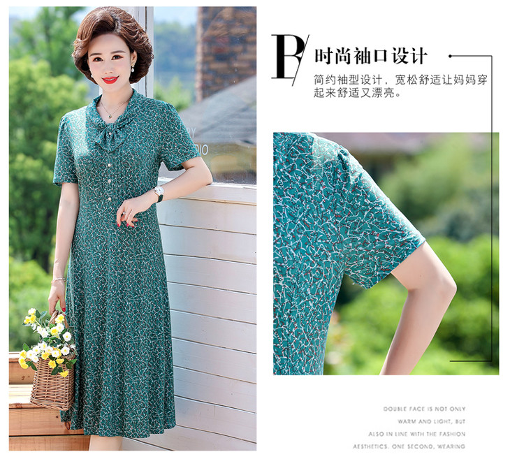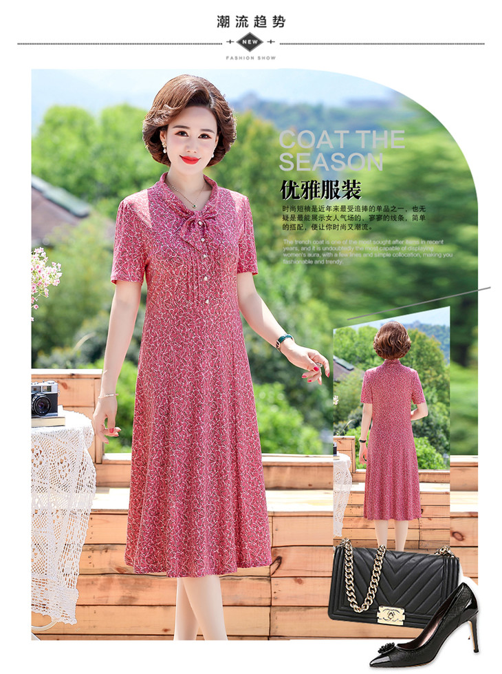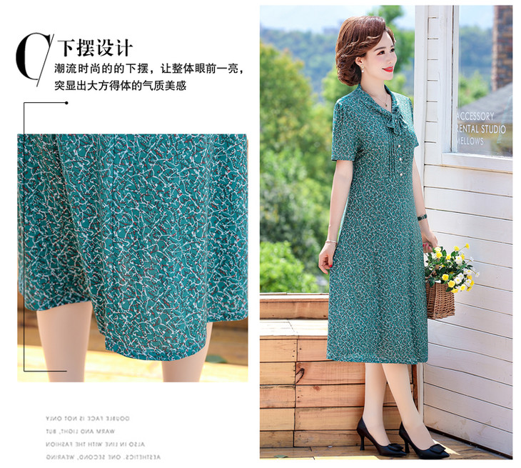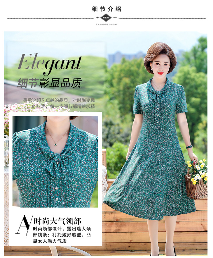 JCG-6354夏季新款洋气妈妈短袖裙子贵夫人碎花过膝中老年连衣裙