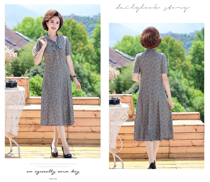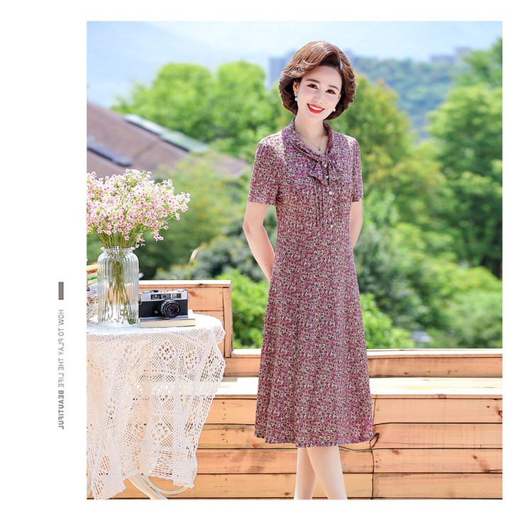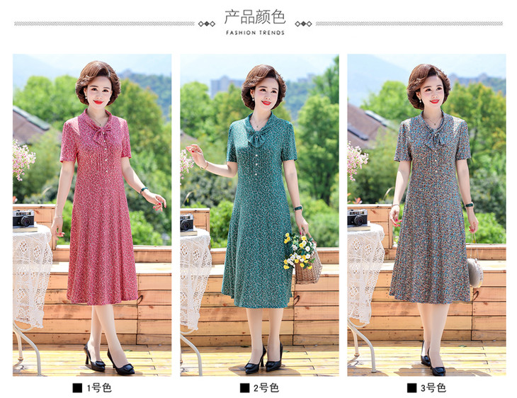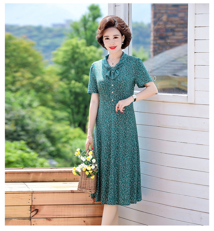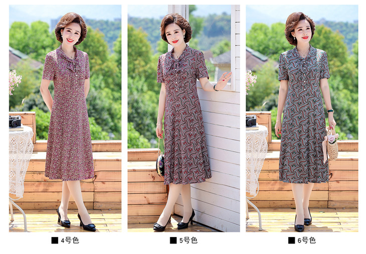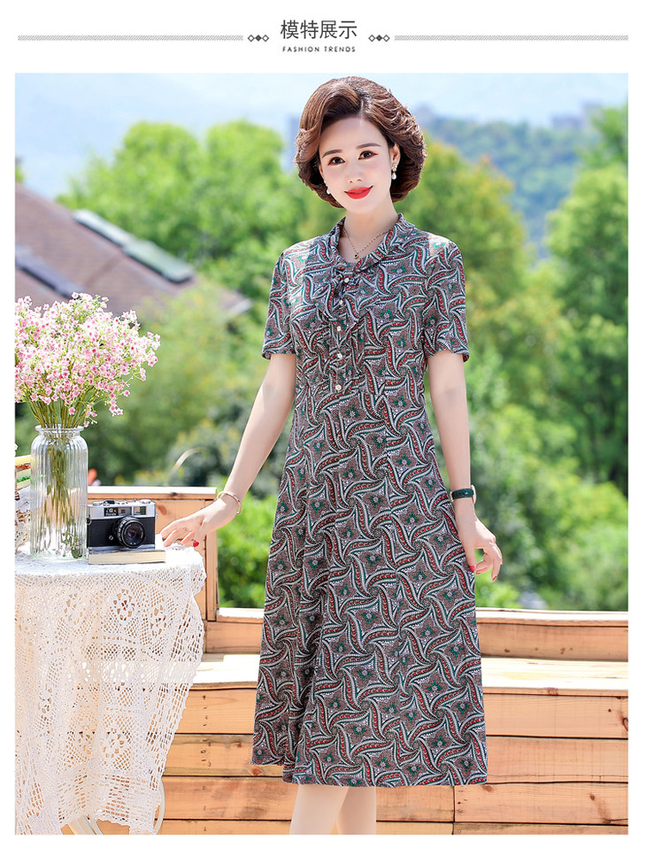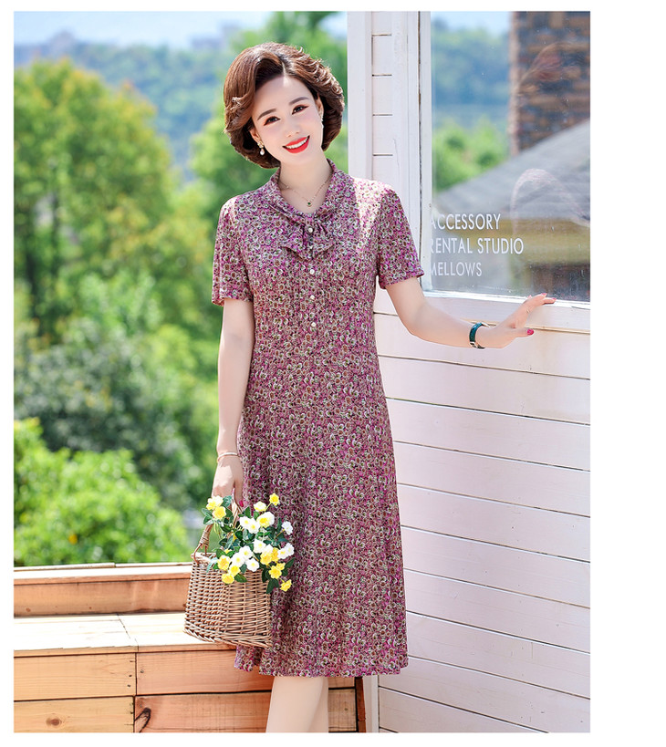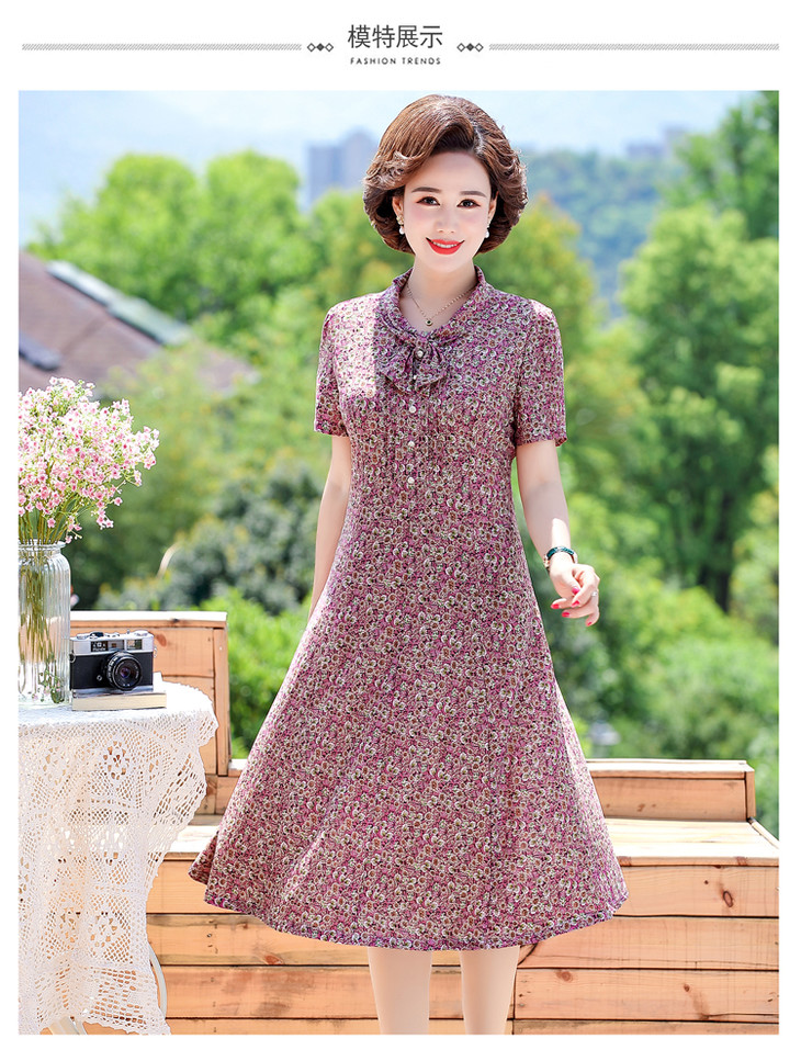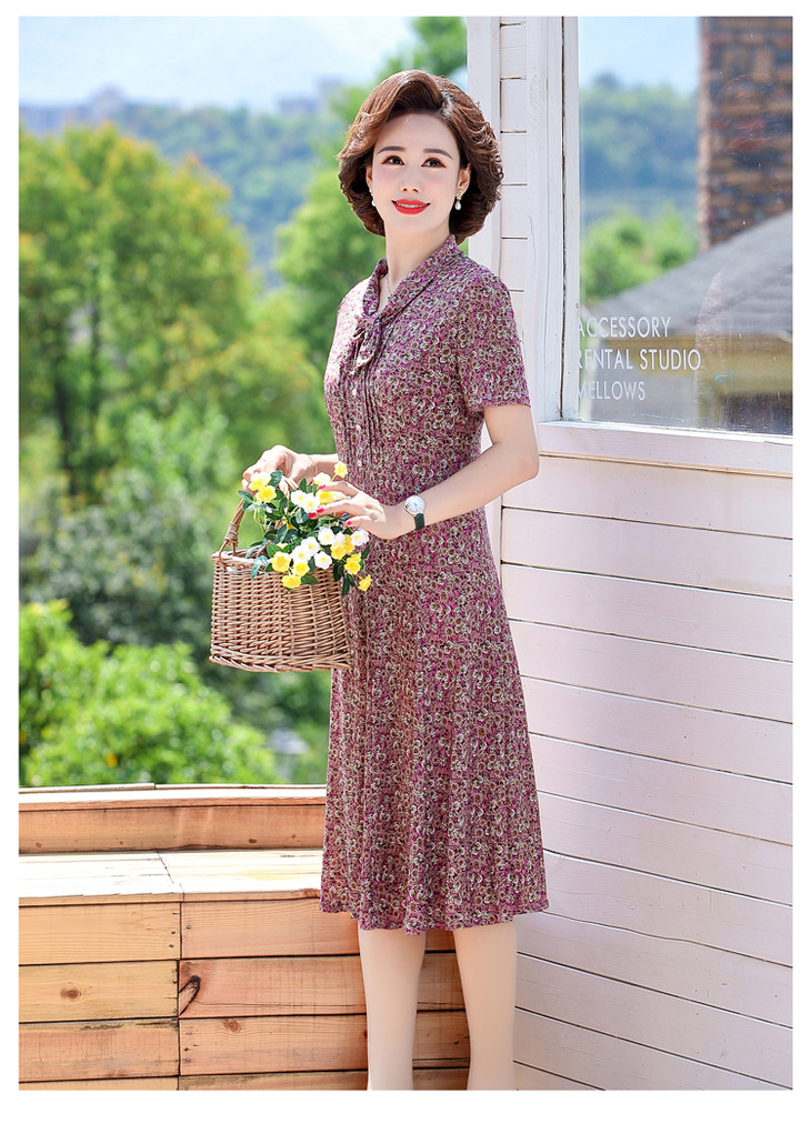 JCG-6354夏季新款洋气妈妈短袖裙子贵夫人碎花过膝中老年连衣裙