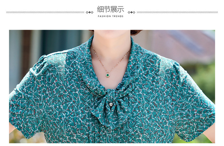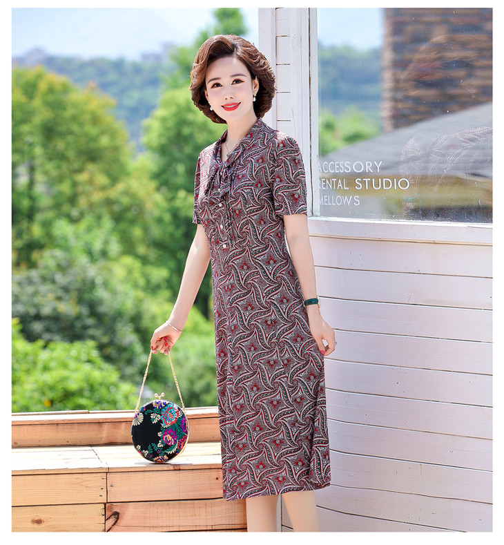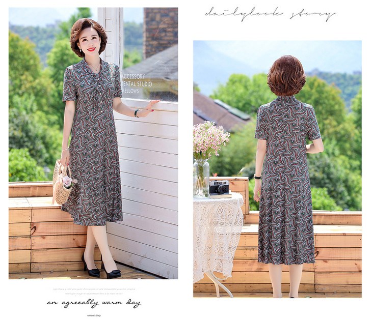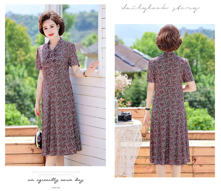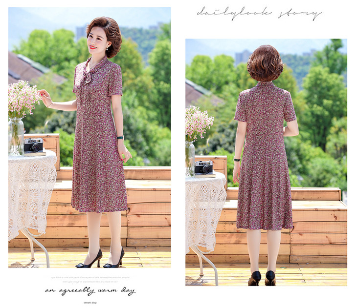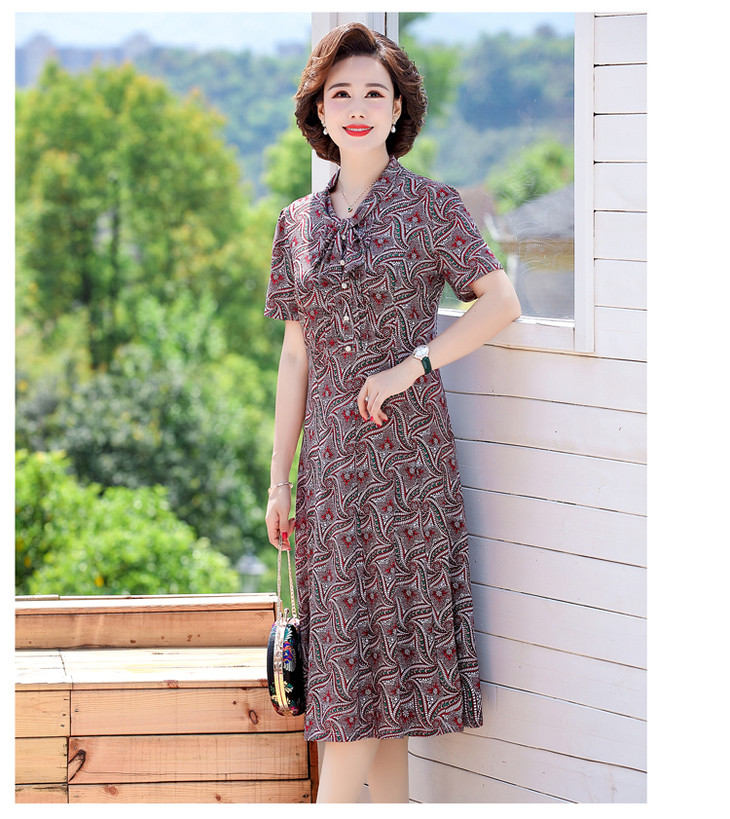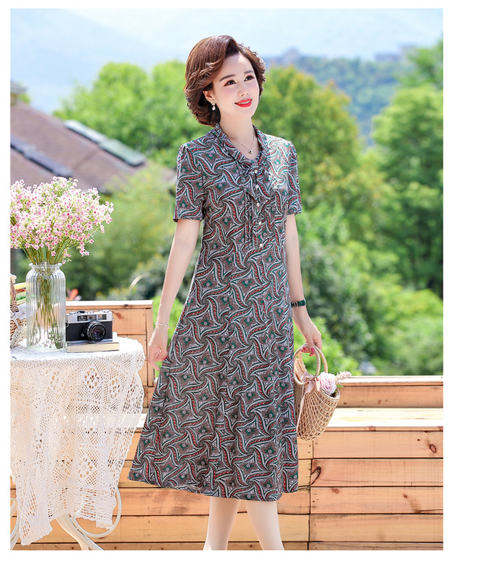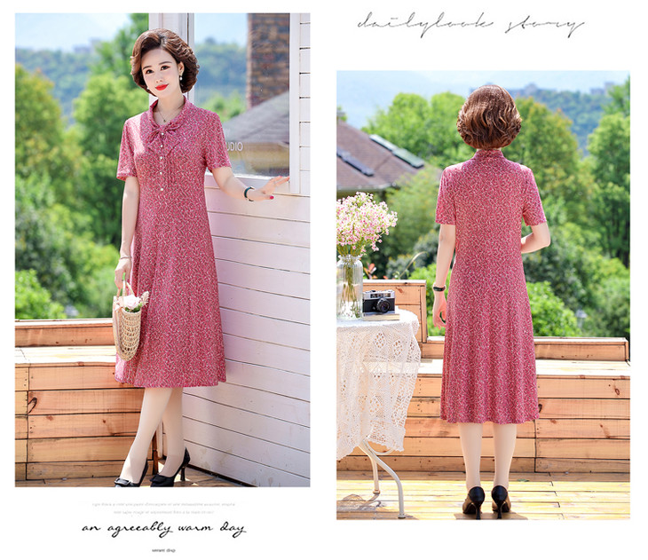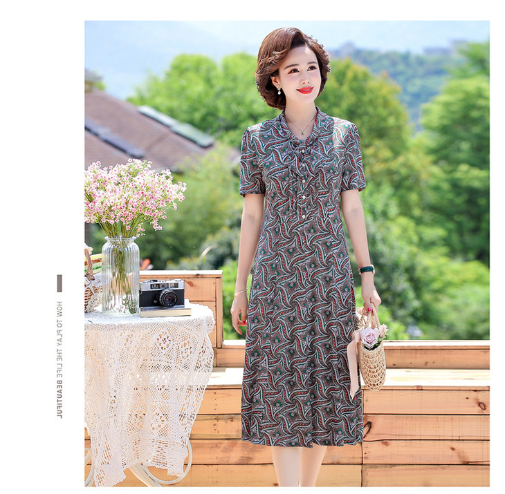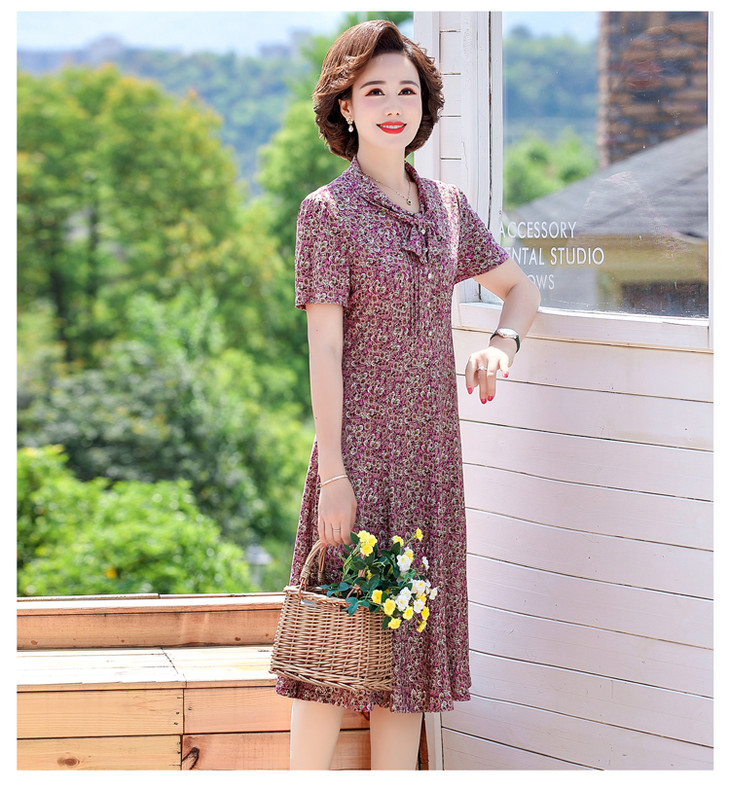 JCG-6354夏季新款洋气妈妈短袖裙子贵夫人碎花过膝中老年连衣裙