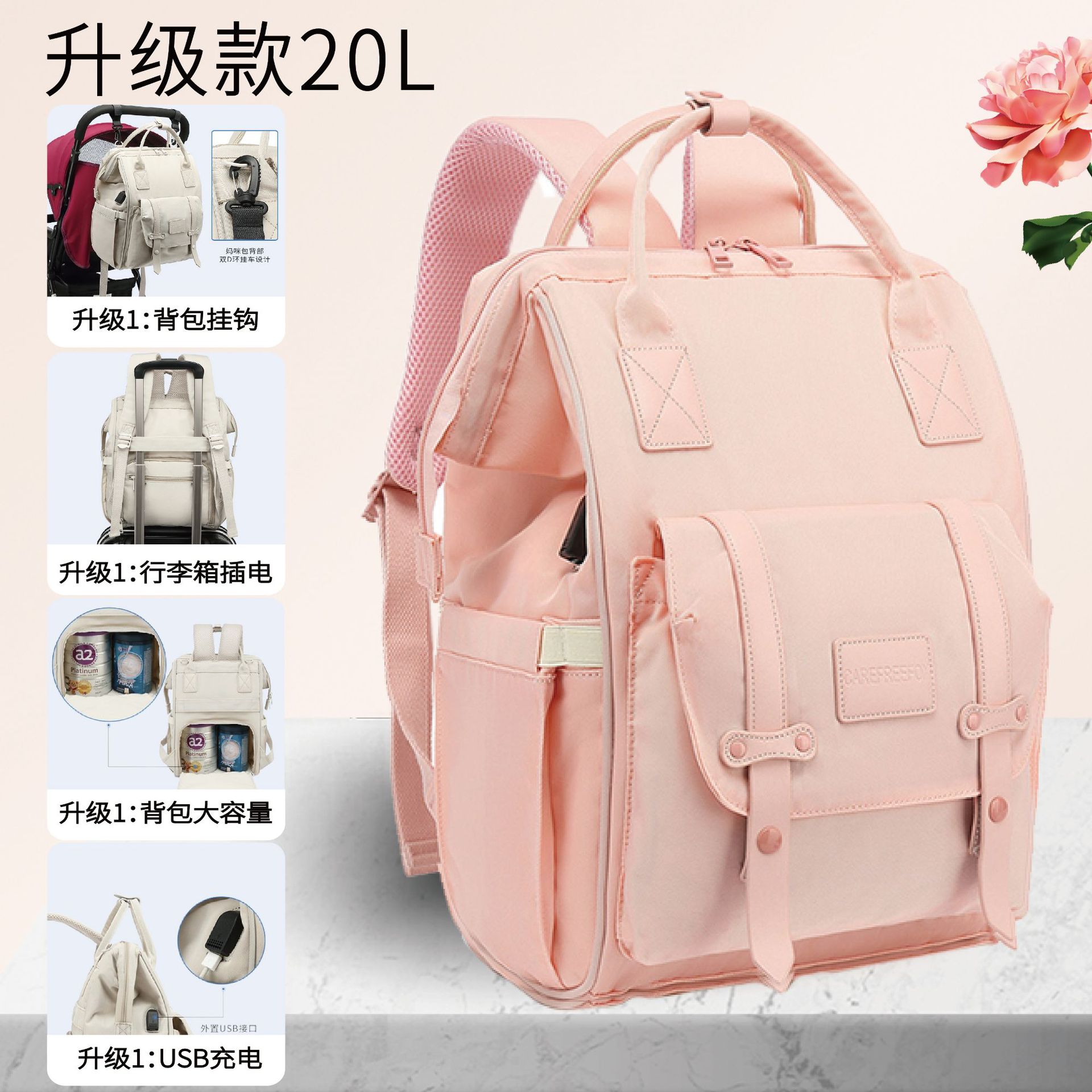 【防水材质!耐用易清洁】手提妈咪包双肩背包多功能宝妈防水母婴包包大容量妈妈包轻便。xb