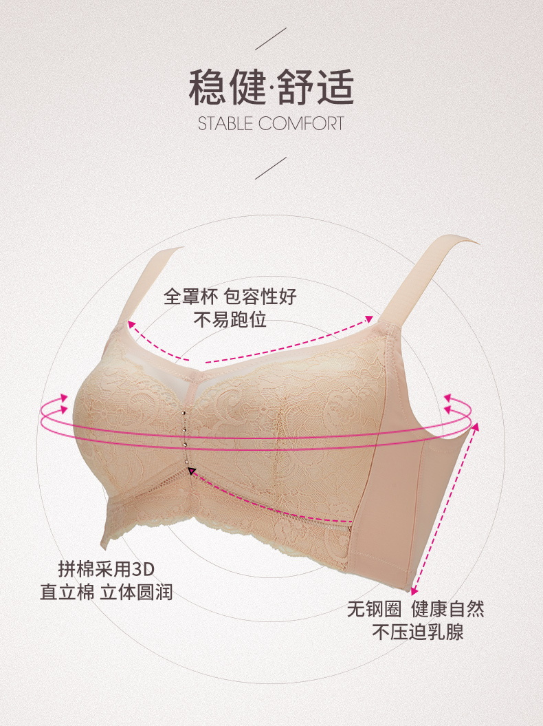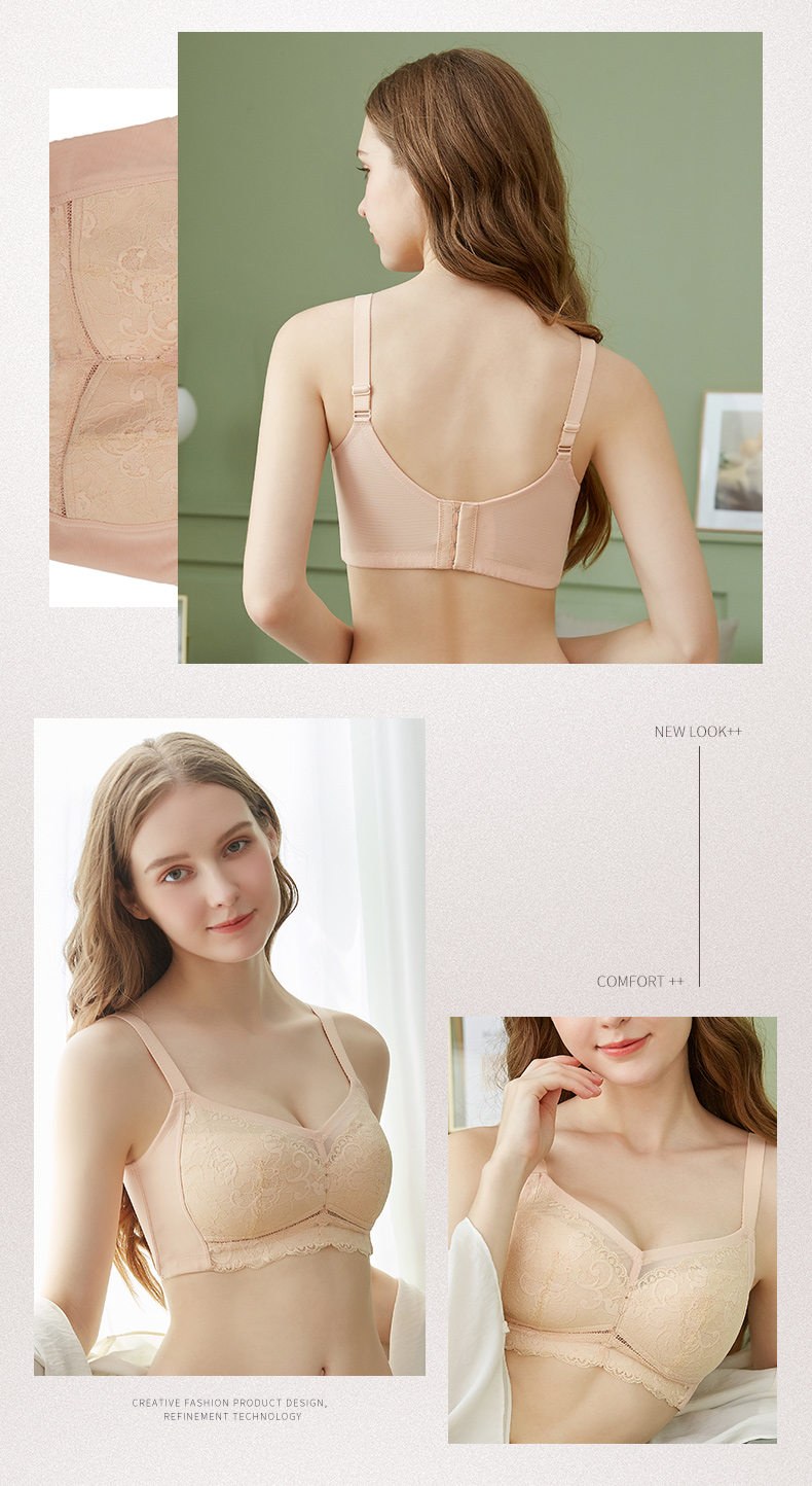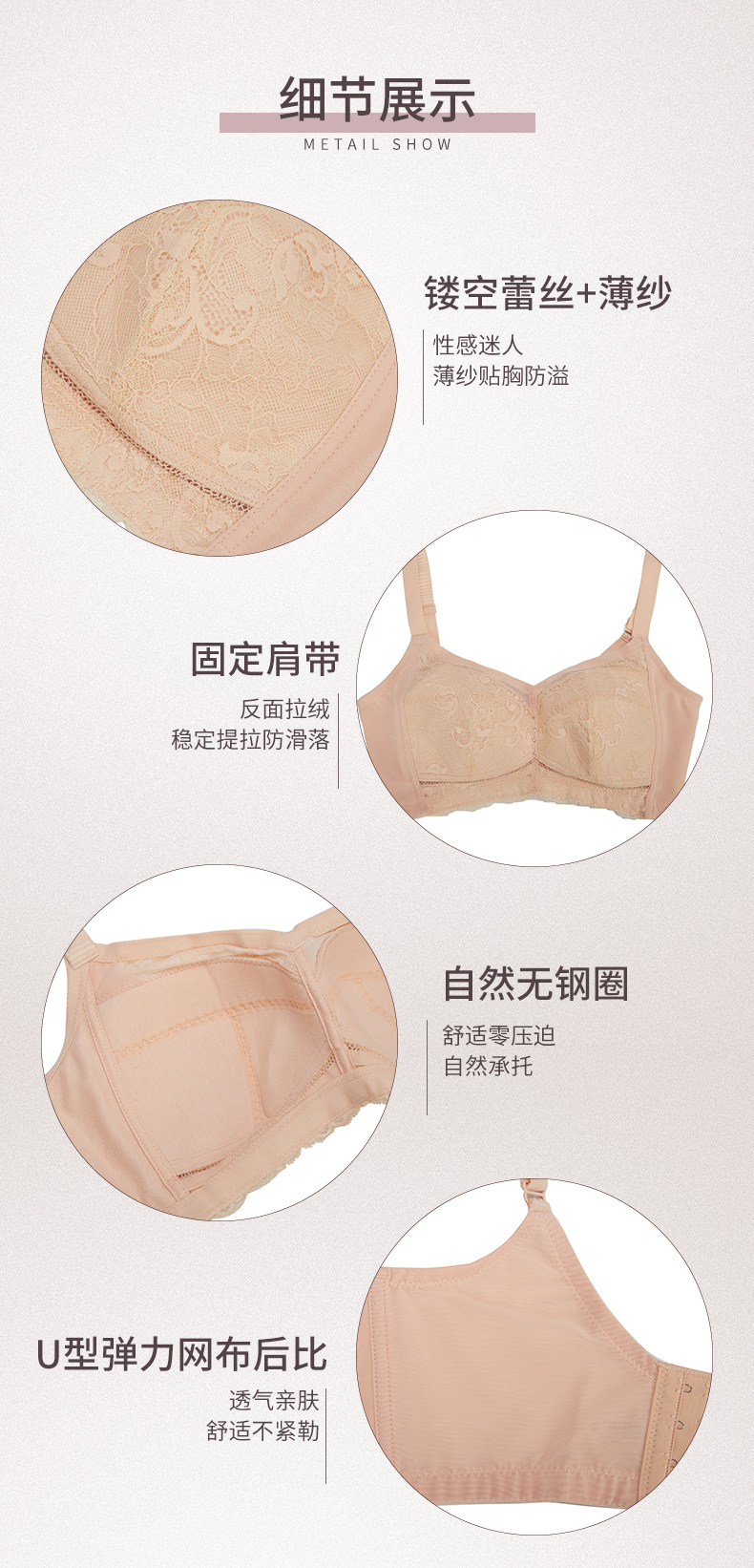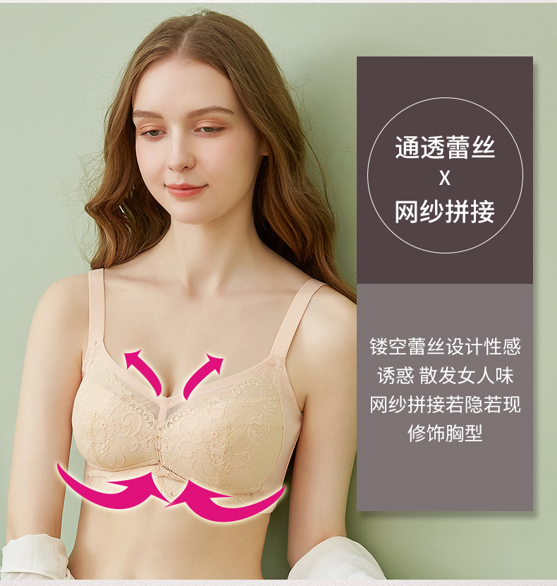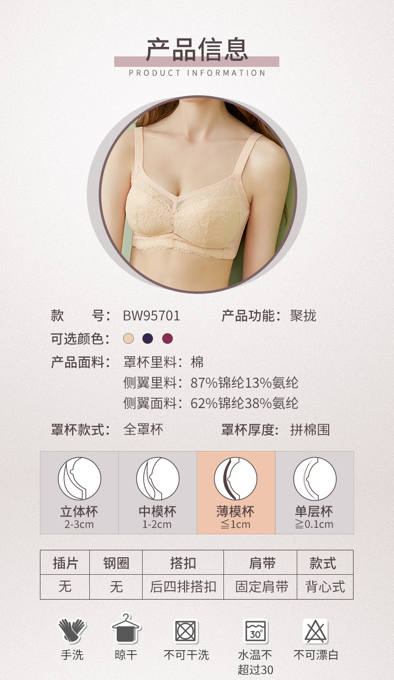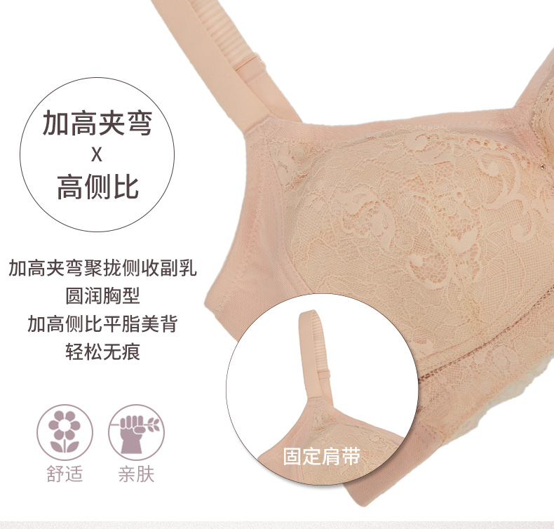 贝佳人新品无钢圈透气蕾丝文胸月牙托小胸聚拢宽侧比收副乳内衣BW95902