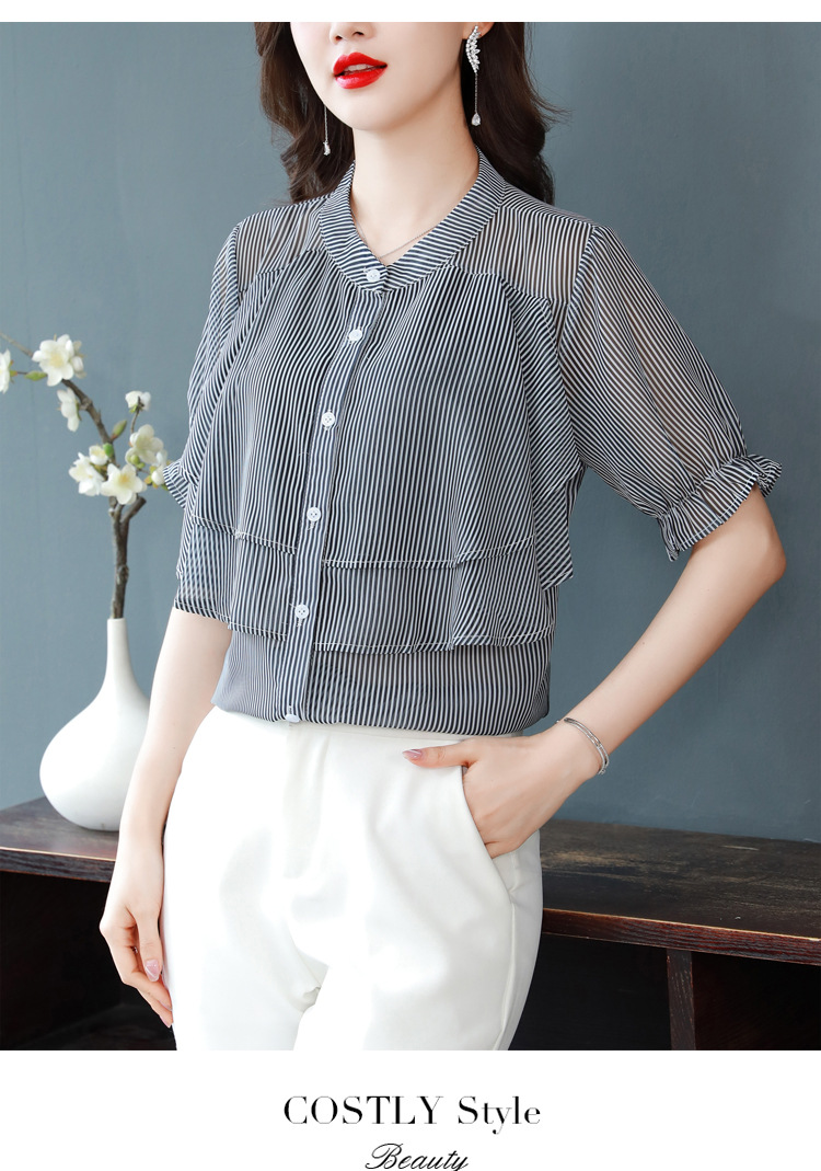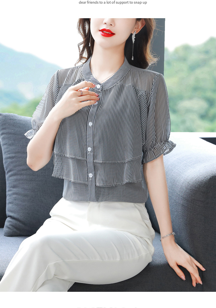 MZ802404 通勤2022夏季新款气质通勤女装休闲衬衫衣女显瘦百搭荷叶边上衣女