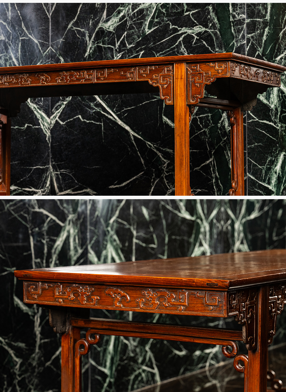 清 黄花梨罗锅枨束腰马蹄腿方凳