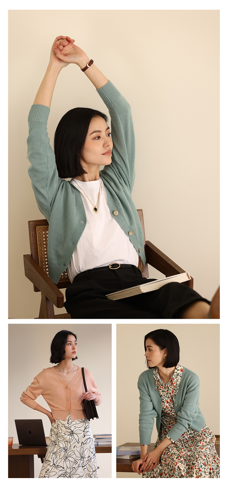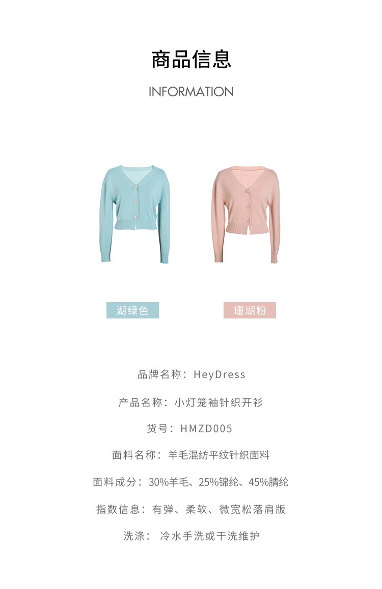 HeyDress30羊毛针织开衫女春夏法式V领短款外搭温柔气质百搭上衣